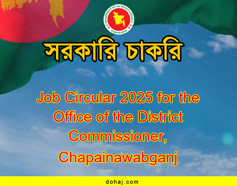 DC Office Job Circular 2025: চাঁপাইনবাবগঞ্জ জেলা প্রশাসকের কার্যালয়ের শূন্য পদে লোক নিয়োগ দেয়া হবে। চাঁপাইনবাবগঞ্জ জেলার প্রশাসকের কার্যালয় ০৪ টি পদে মোট ২৩ জনকে নিয়োগ দেবে। এই চাকরিতে চাঁপাইনবাবগঞ্জ জেলার স্থায়ী বাসিন্দারা শুধু আবেদন করতে পারবেন। পদগুলোতে নারী ও পুরুষ উভয়ই প্রার্থীরা আবেদন করতে পারবেন। সম্পূর্ণ বিজ্ঞপ্তি বিস্তারিত দেওয়া হল।