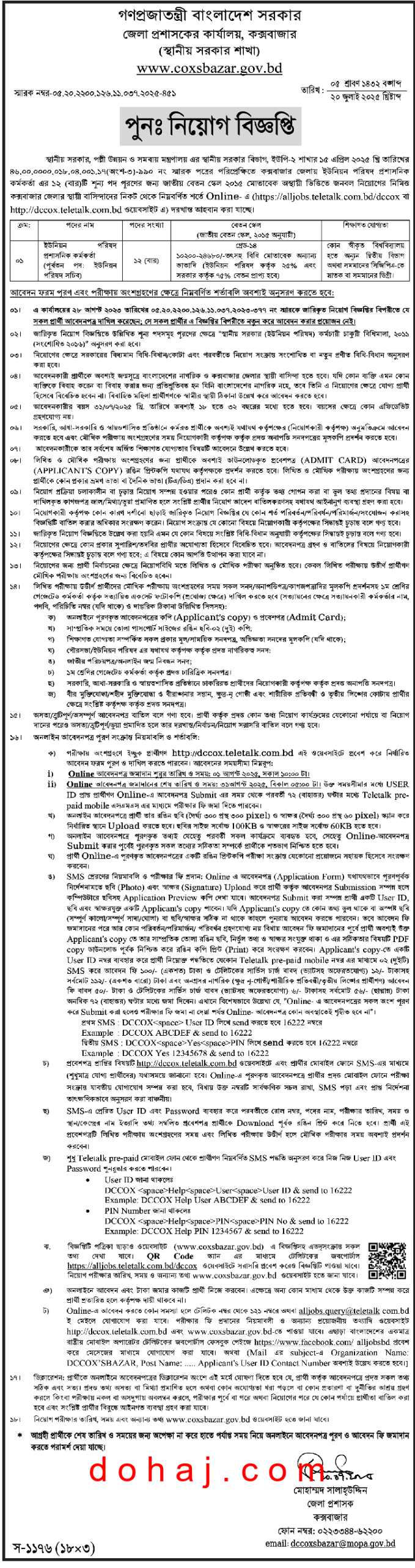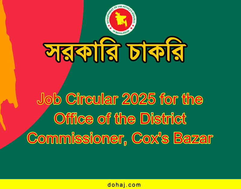 Cox Bazar DC Office Job Circular 2025: কক্সবাজার জেলা প্রশাসকের কার্যালয় এর শূন্য পদসমূহে জনবল নিয়োগ দেয়া হবে। কক্সবাজার জেলা প্রশাসকের কার্যালয় ০১ টি পদে মোট ১২ জনকে নিয়োগ দেয়া হবে। আগ্রহী প্রার্থীরা অনলাইনে আবেদন করতে পারবেন। পদগুলোতে নারী ও পুরুষ উভয়ই প্রার্থীরা আবেদন করতে পারবেন। সম্পূর্ণ বিজ্ঞপ্তি বিস্তারিত দেওয়া হল।