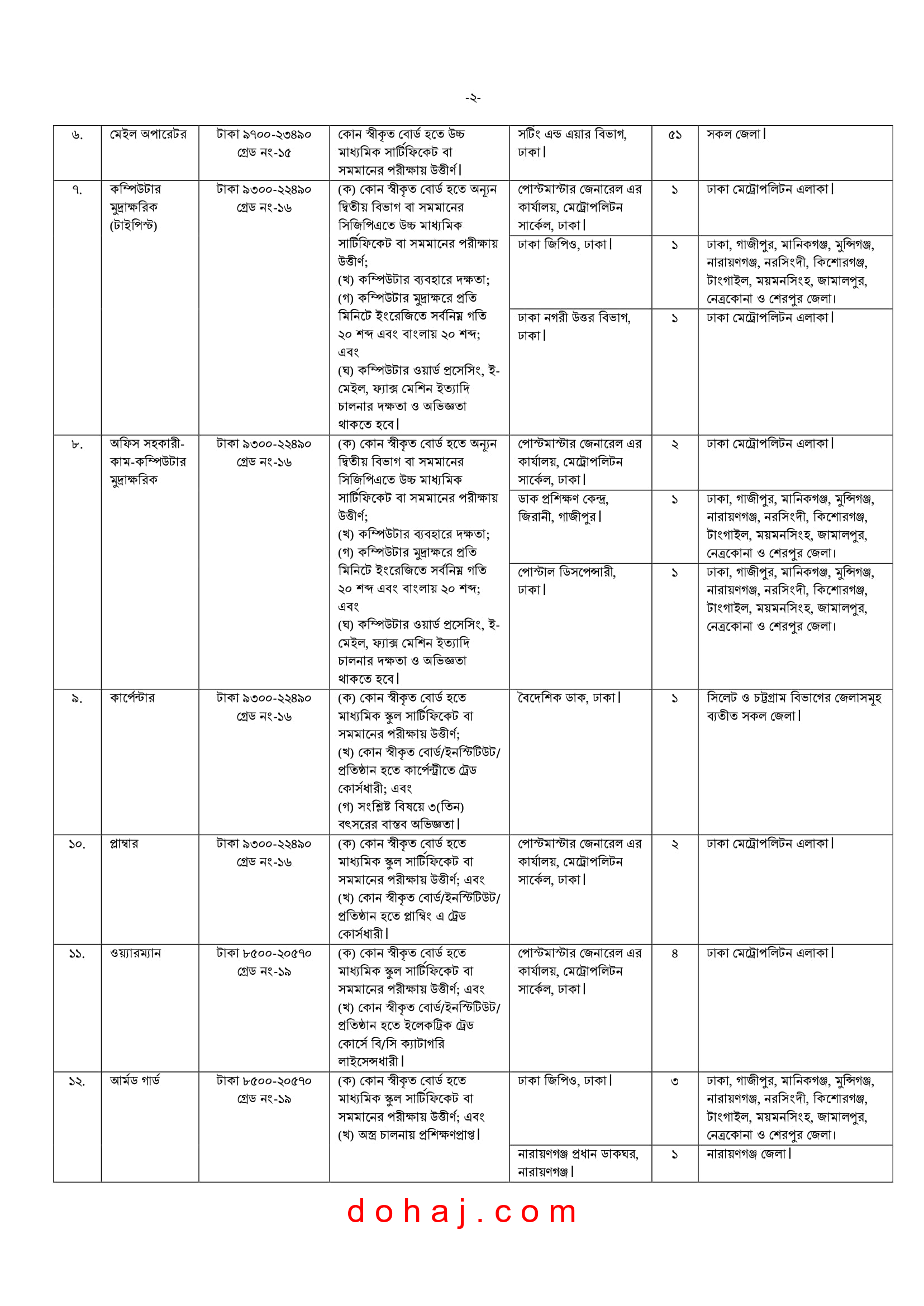 অন্যান্য যোগ্যতা: কম্পিউটার মুদ্রাক্ষরে প্রতি মিনিটে সর্বনিম্ন গতি ইংরেজিতে ৩০ শব্দ ও বাংলায় ২৫ শব্দ থাকতে হবে।