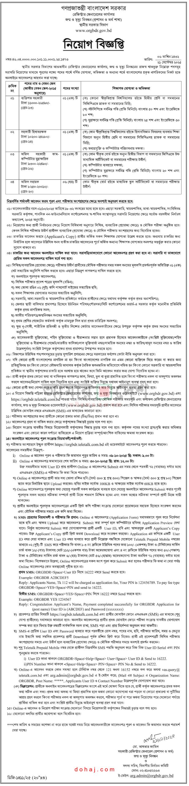 আবেদনের নিয়ম: আগ্রহী প্রার্থীরা অনলাইনে http://orgbdr.teletalk.com.bd ওয়েবসাইটের মাধ্যমে আবেদন করতে পারবেন।