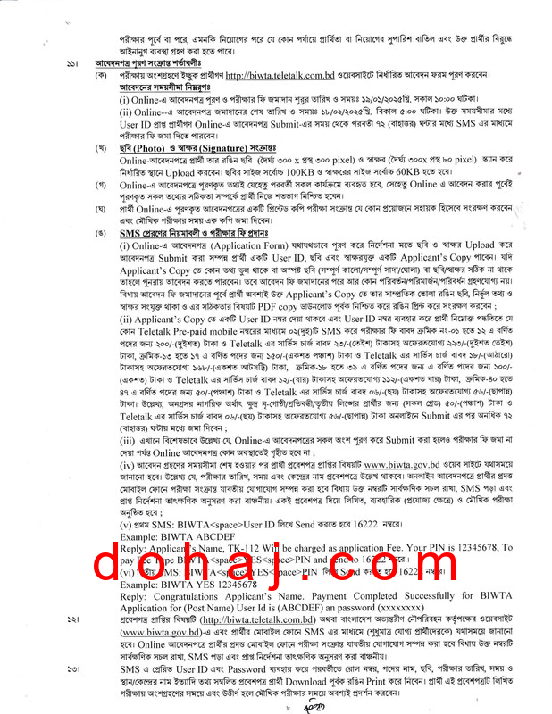 আবেদনের নিয়ম: আগ্রহী প্রার্থীরা অনলাইনে http://biwta.teletalk.com.bd ওয়েবসাইটের মাধ্যমে আবেন করতে পারবেন।