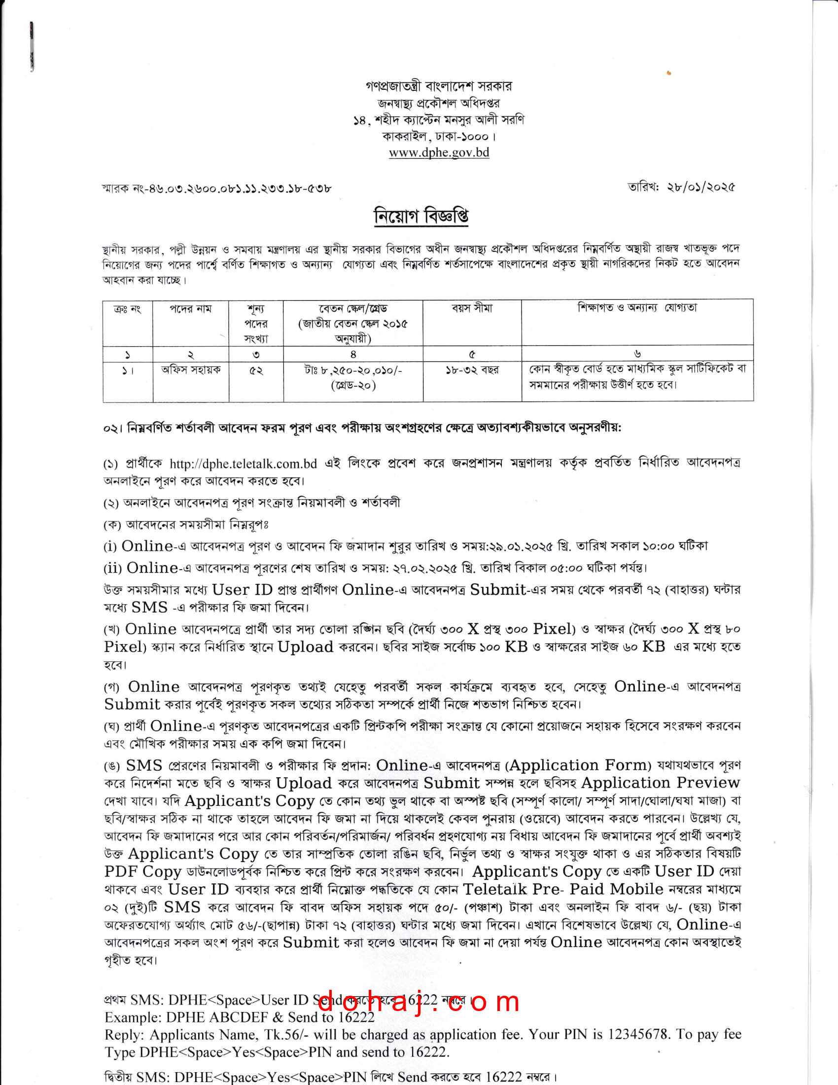 পদ সংখ্যা: ৫২ টি।