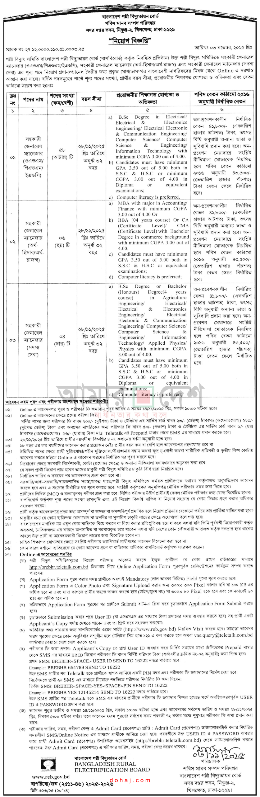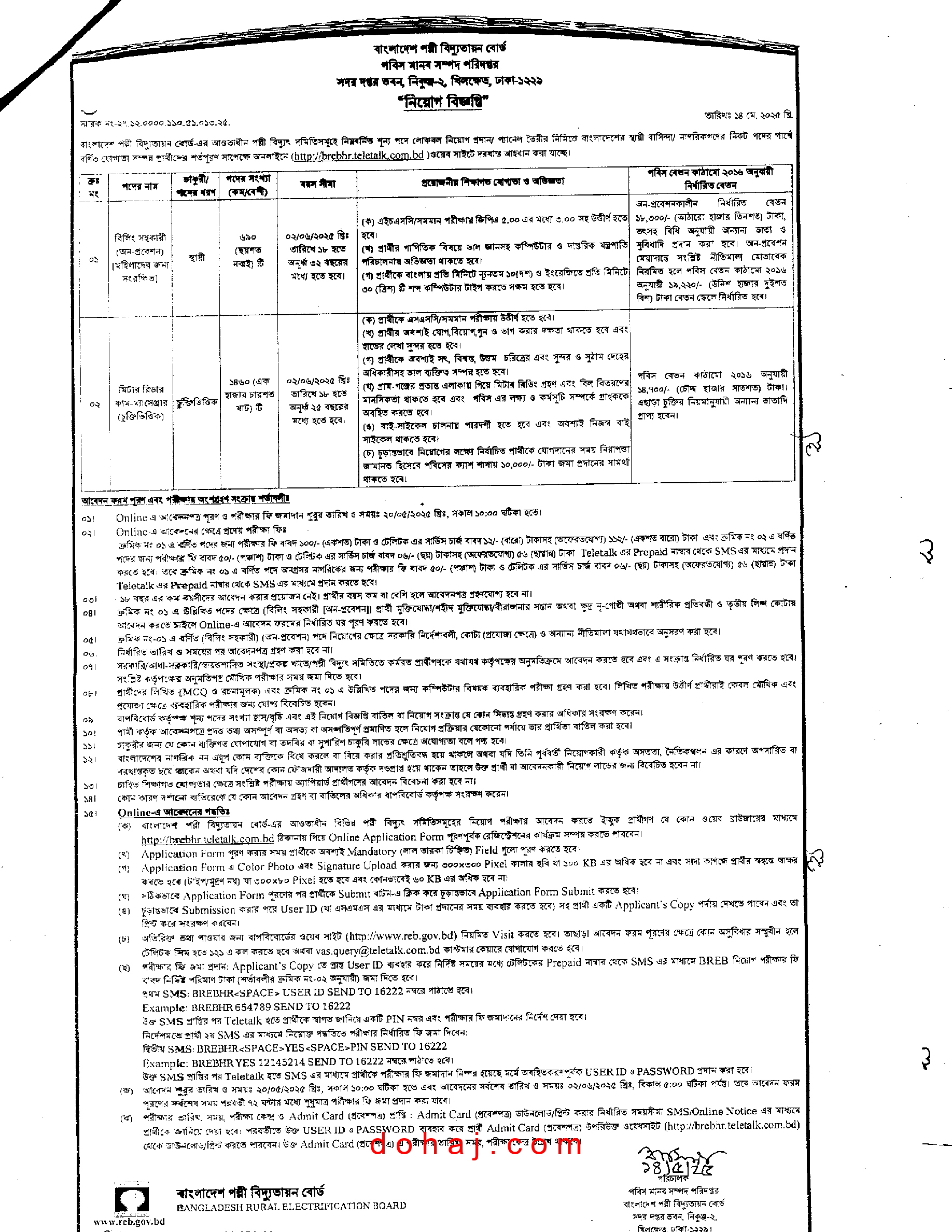 আবেদন প্রক্রিয়া: আবেদন করতে হবে অনলাইনে http://brebhr.teletalk.com.bd ওয়েবসাইটের মাধমে অনলাইনে আবেদনপত্র পাঠাতে হবে।