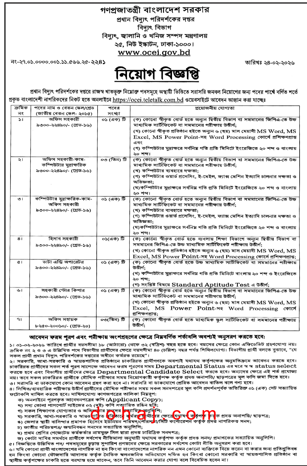 আবেদন প্রক্রিয়া: আবেদন করতে হবে অনলাইনে http://ocei.teletalk.com.bd ওয়েবসাইটের মাধমে অনলাইনে আবেদনপত্র পাঠাতে হবে।