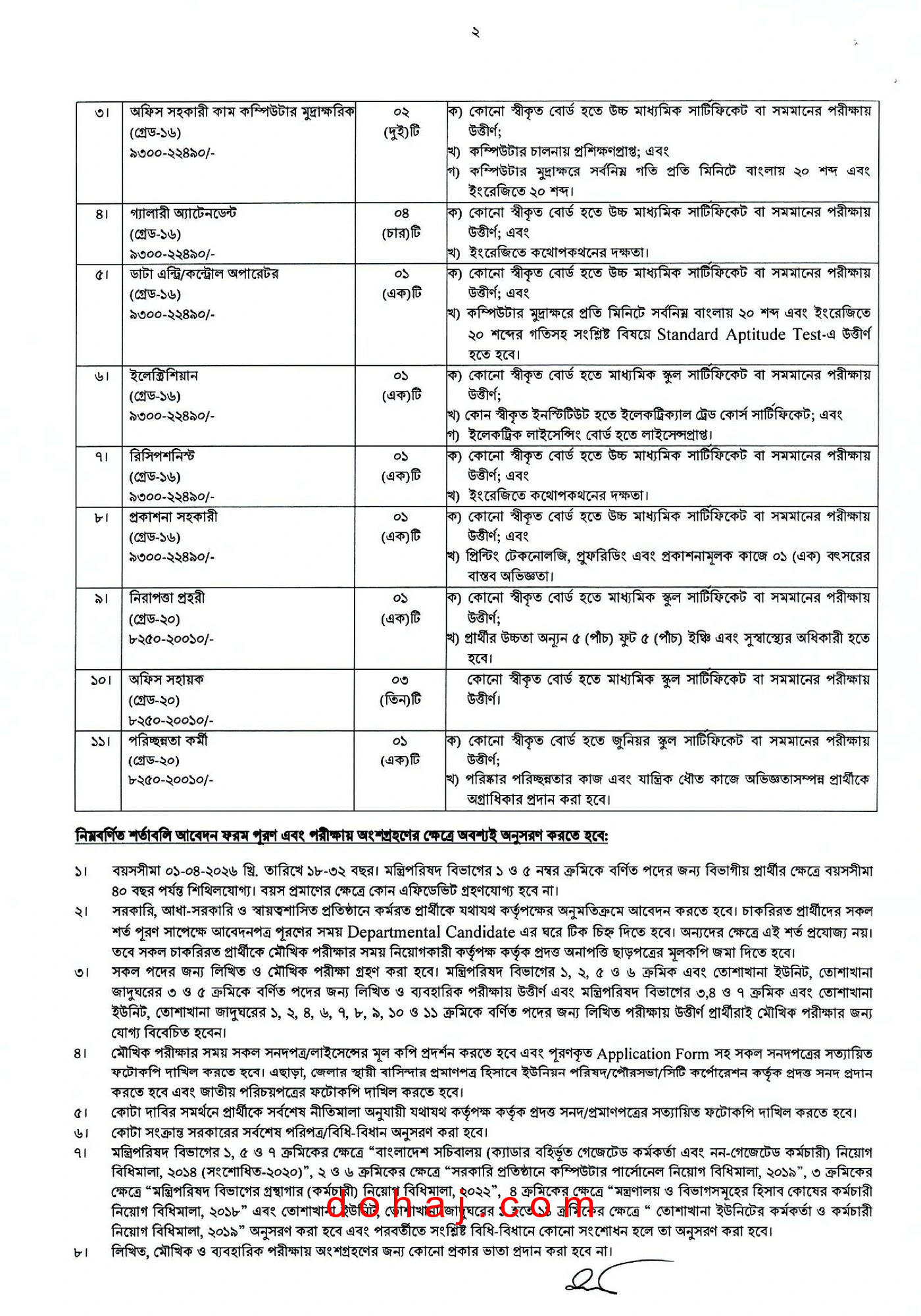বেতন স্কেল: ৮,২৫০-২০,০১০ টাকা।