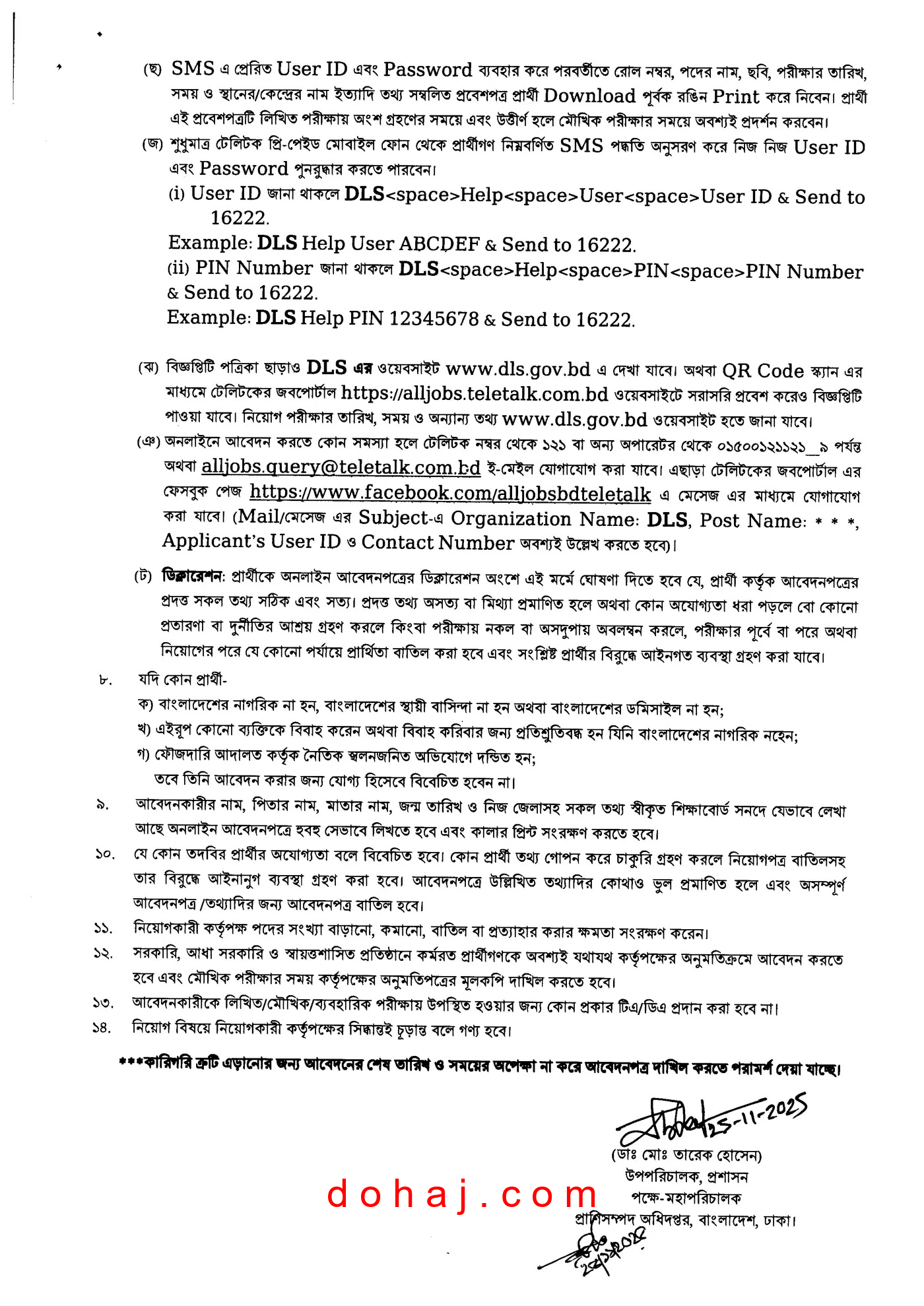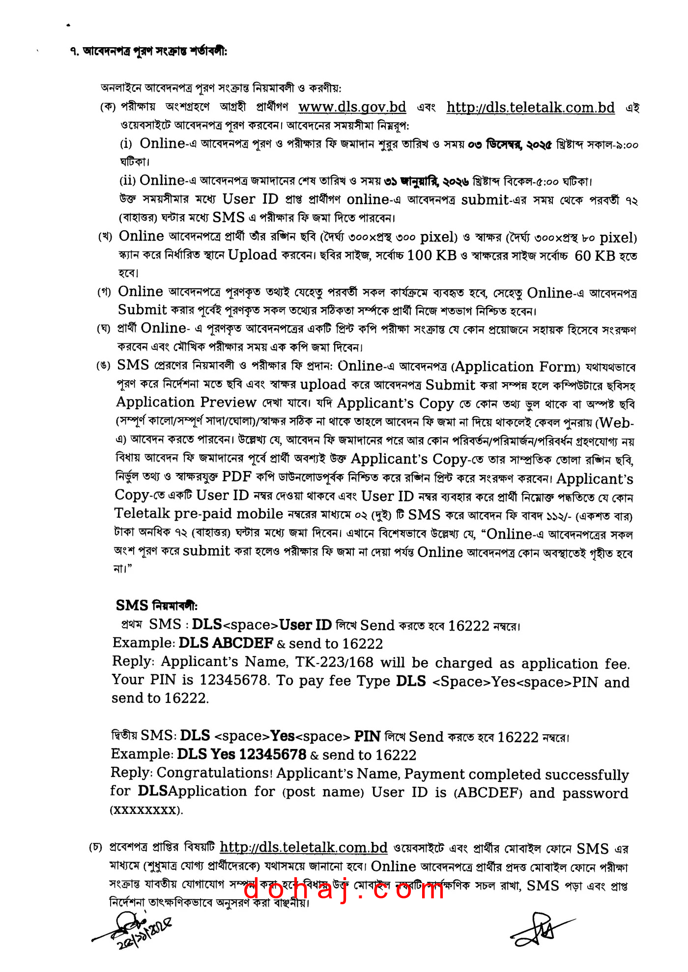 আবেদন প্রক্রিয়া: আগ্রহী প্রার্থীরা এই http://dls.teletalk.com.bd ওয়েবসাইটের মাধ্যমে অনলাইনে আবেদন করতে পারবে।
