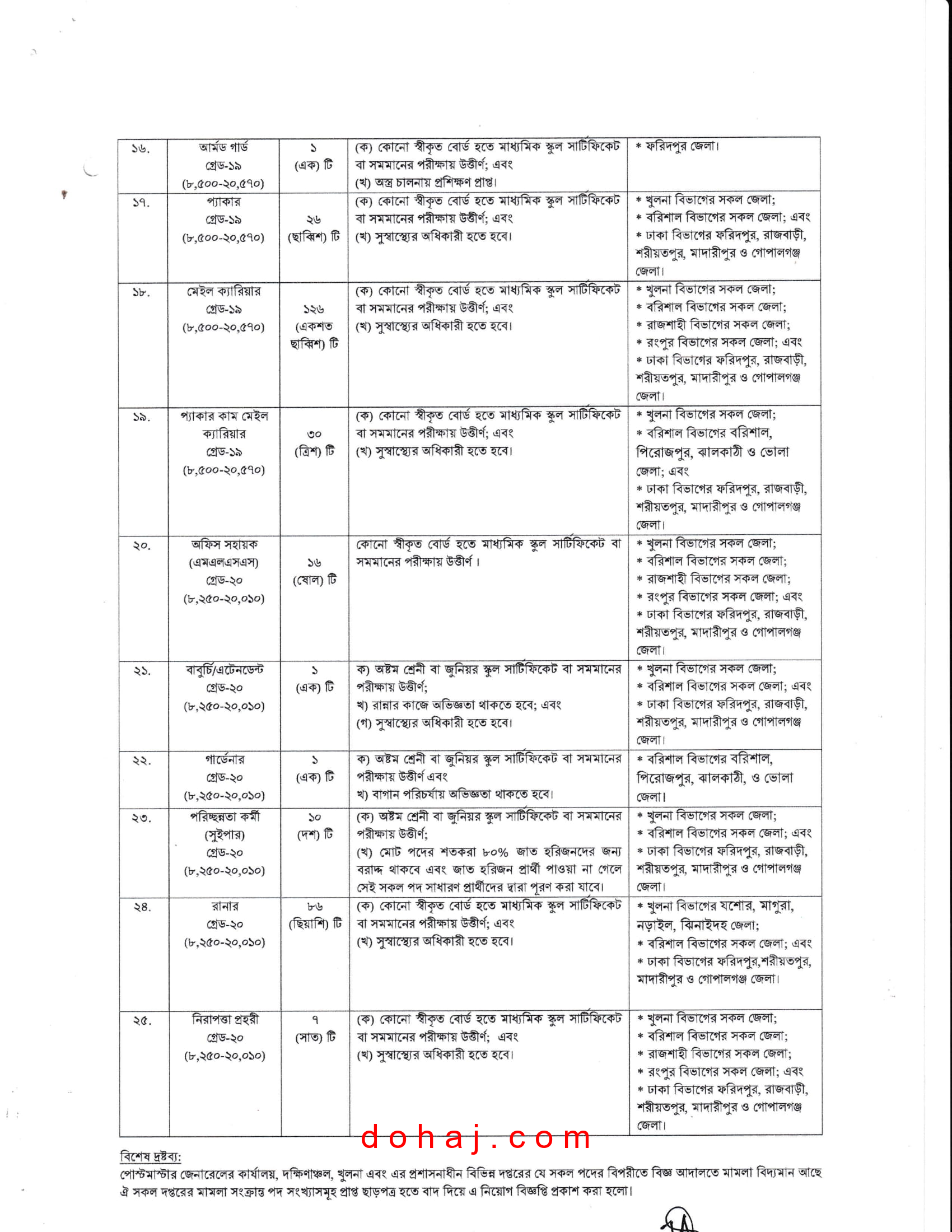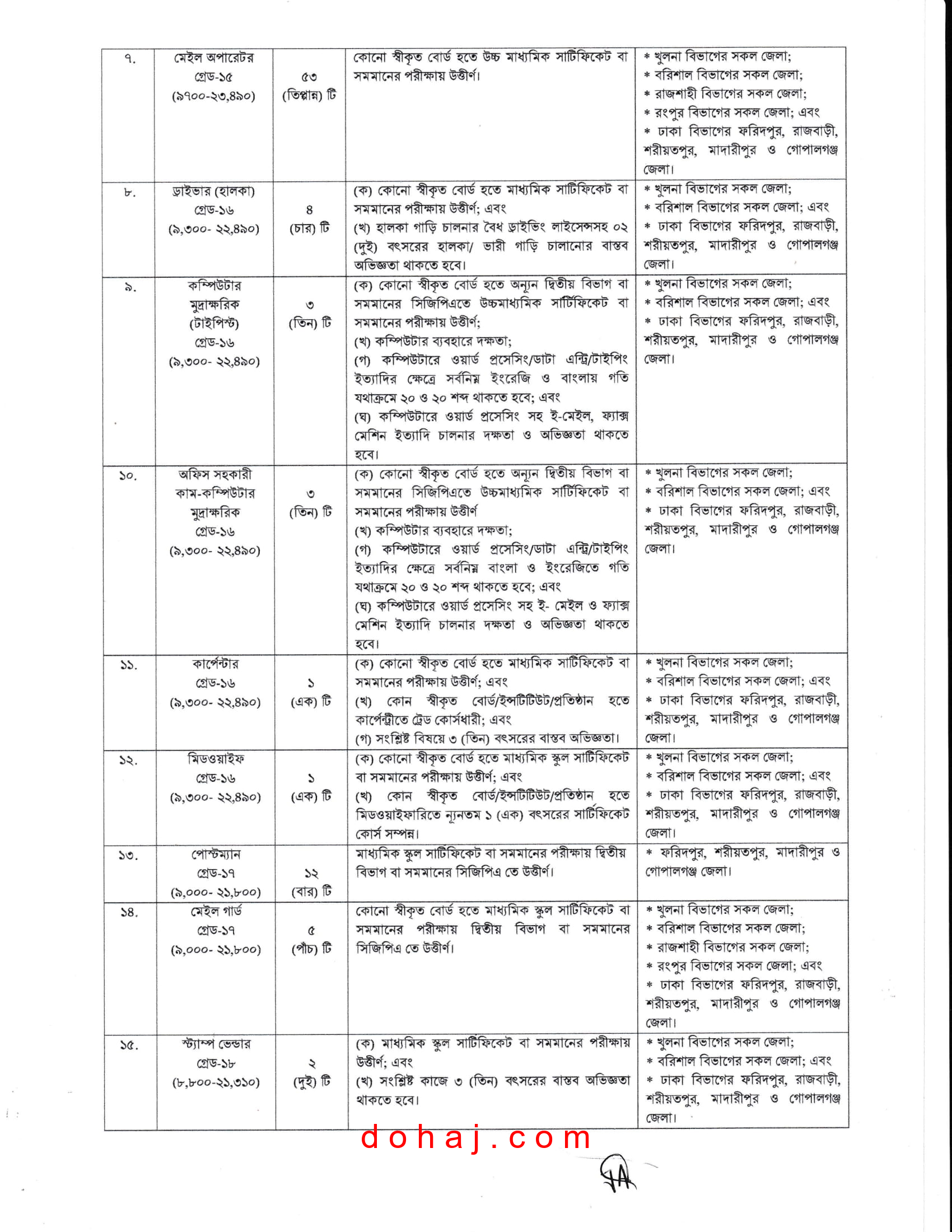 শিক্ষাগত যোগ্যতা: কোনো স্বীকৃত বোর্ড হতে মাধ্যমিক স্কুল সার্টিফিকেট বা সমমানের পরীক্ষায় উত্তীর্ণ