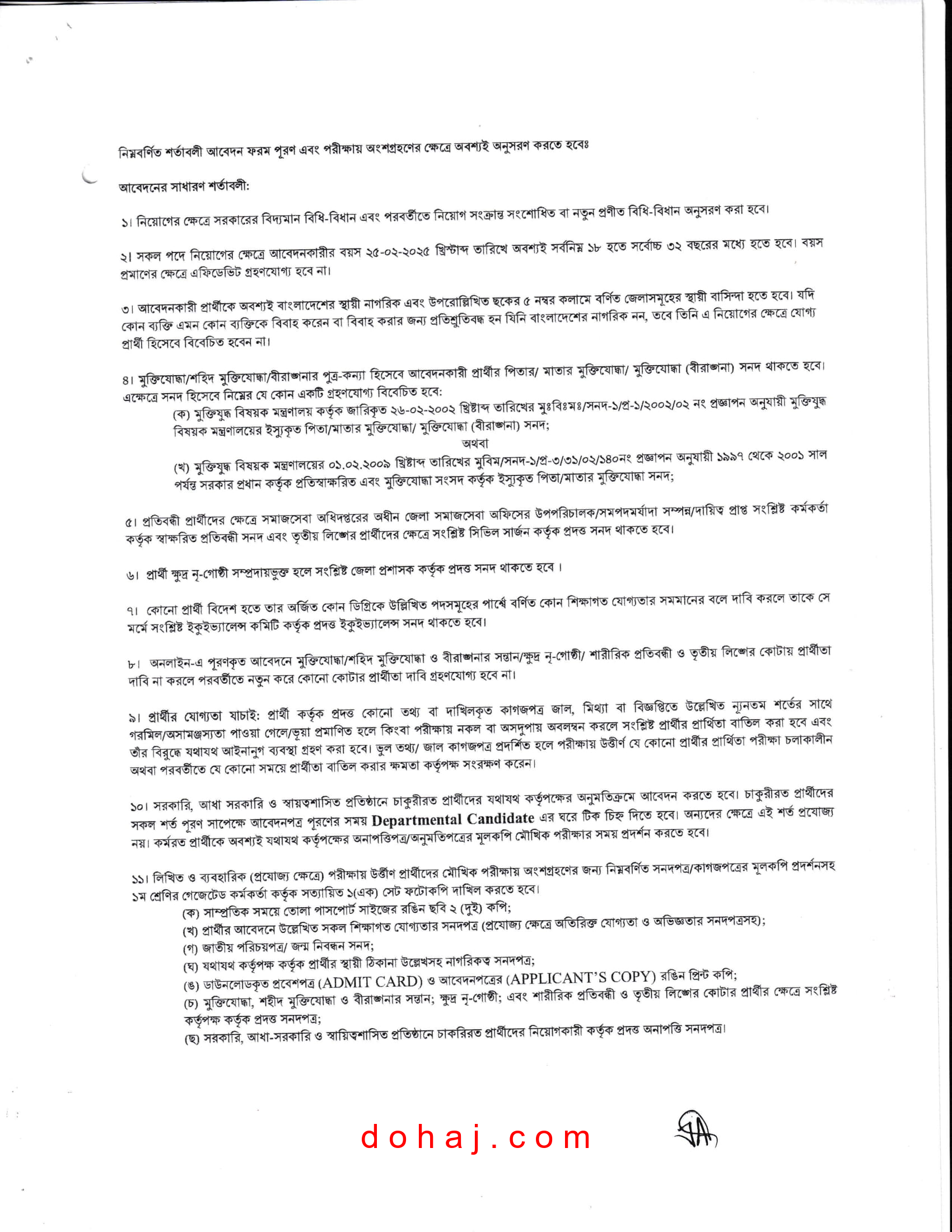 শিক্ষাগত যোগ্যতা: কোনো স্বীকৃত বিশ্ববিদ্যালয় হতে অন্যূন দ্বিতীয় শ্রেণি বা সমমানের সিজিপিএতে স্নাতক বা সমমানের ডিগ্রি