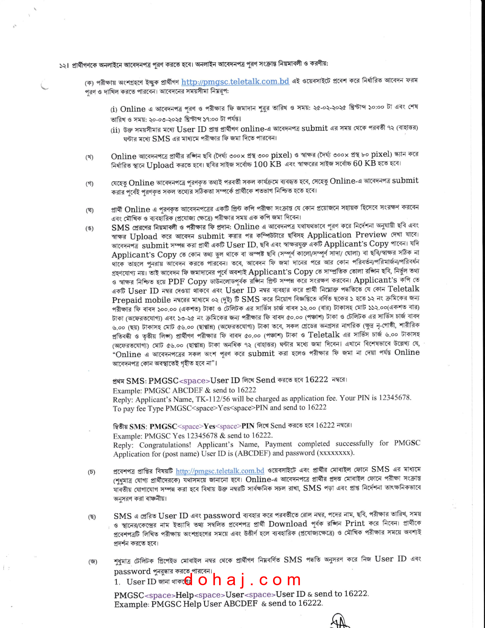 আবেদনের নিয়ম: আগ্রহী প্রার্থীরা অনলাইনে http://pmgsc.teletalk.com.bd ওয়েবসাইটের মাধ্যমে আবেদন করতে পারবেন।