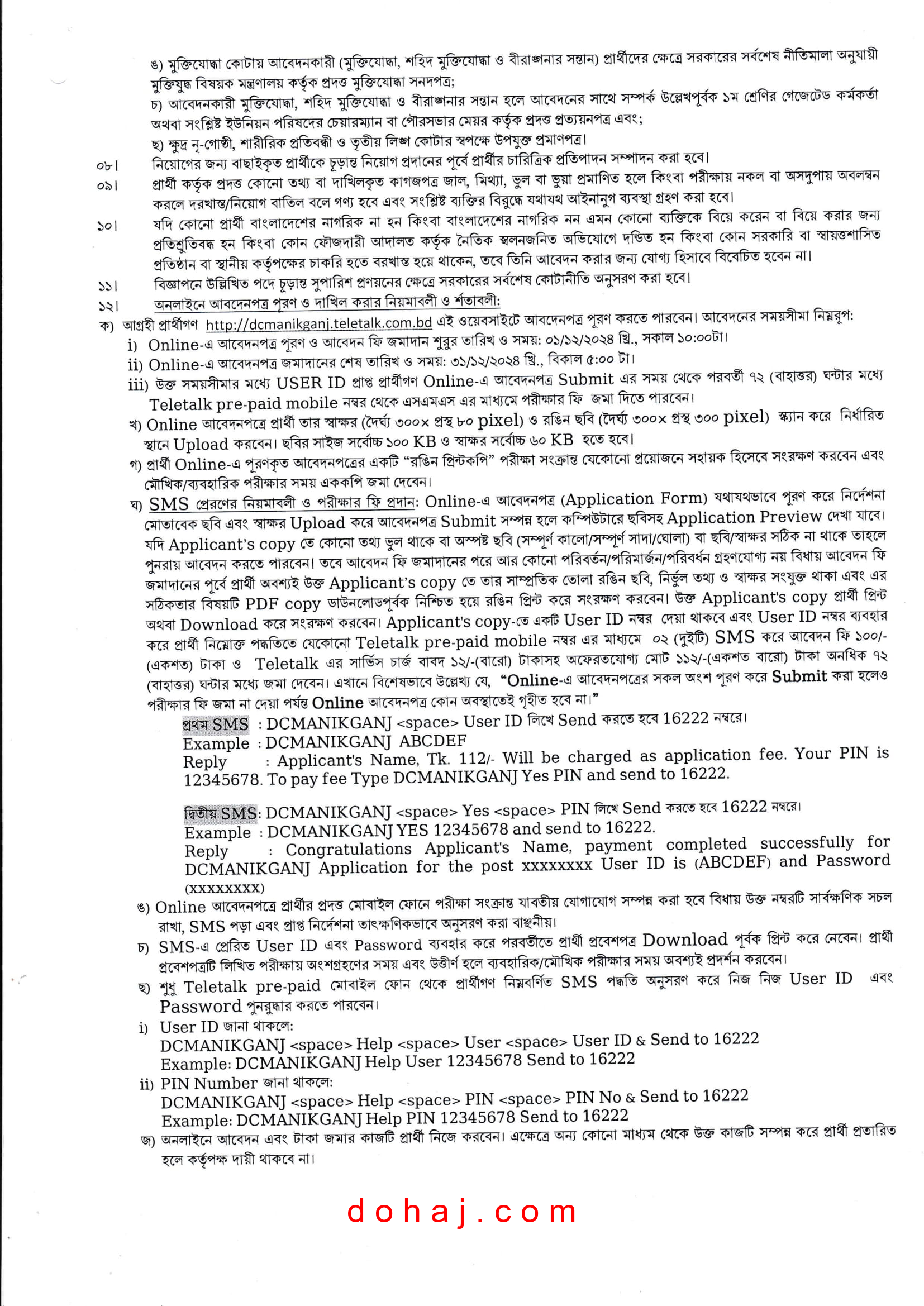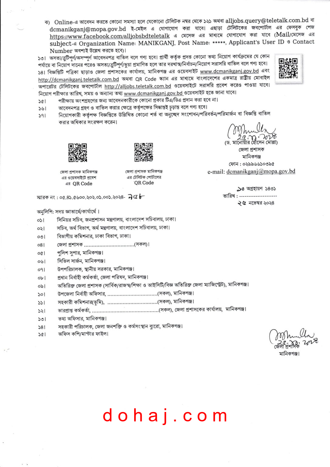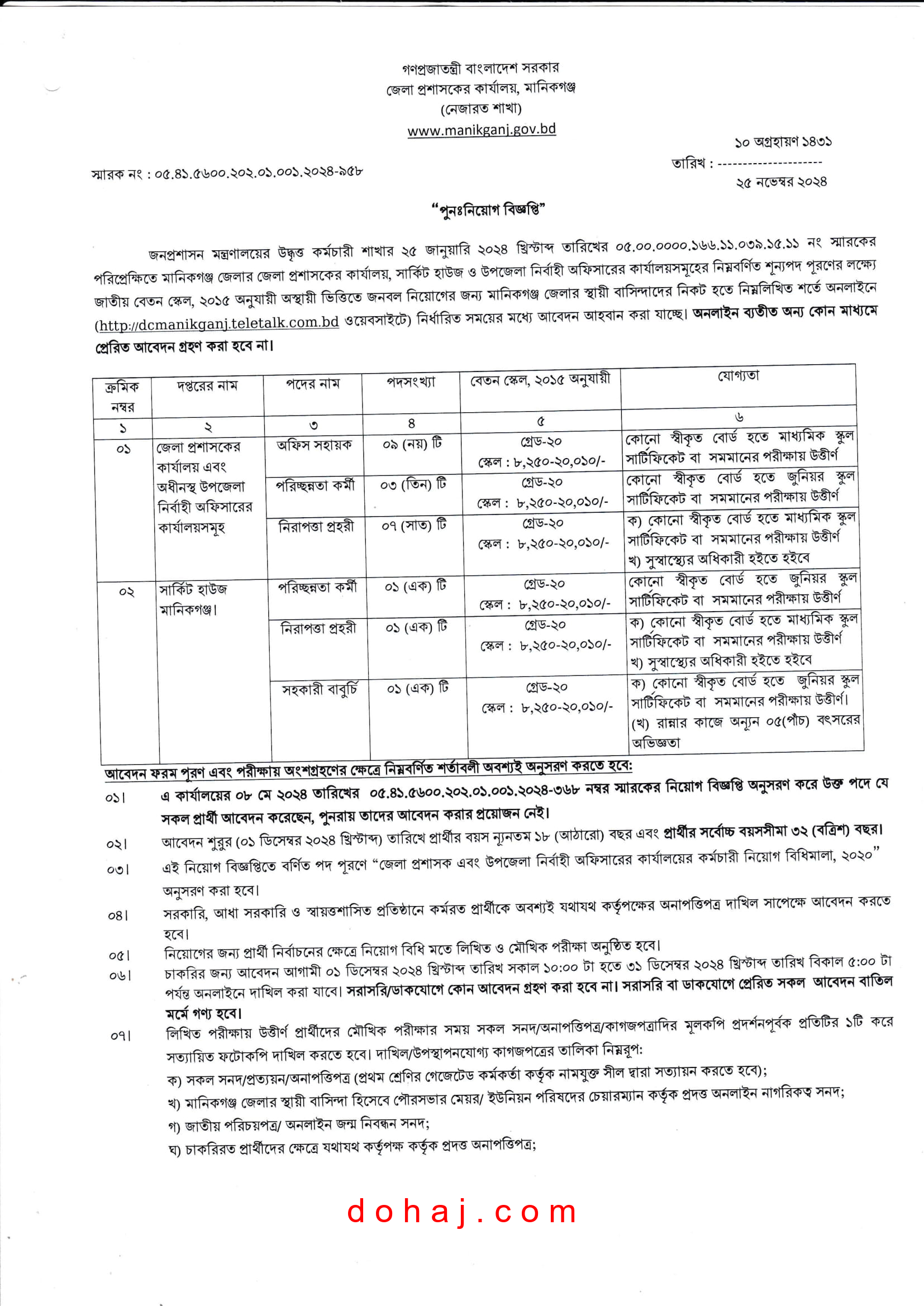 আবেদনের নিয়ম: আগ্রহী প্রার্থীরা অনলাইনে http://dcmanikganj.teletalk.com.bd ওয়েবসাইটের মাধ্যমে আবেদন করতে পারবেন।
