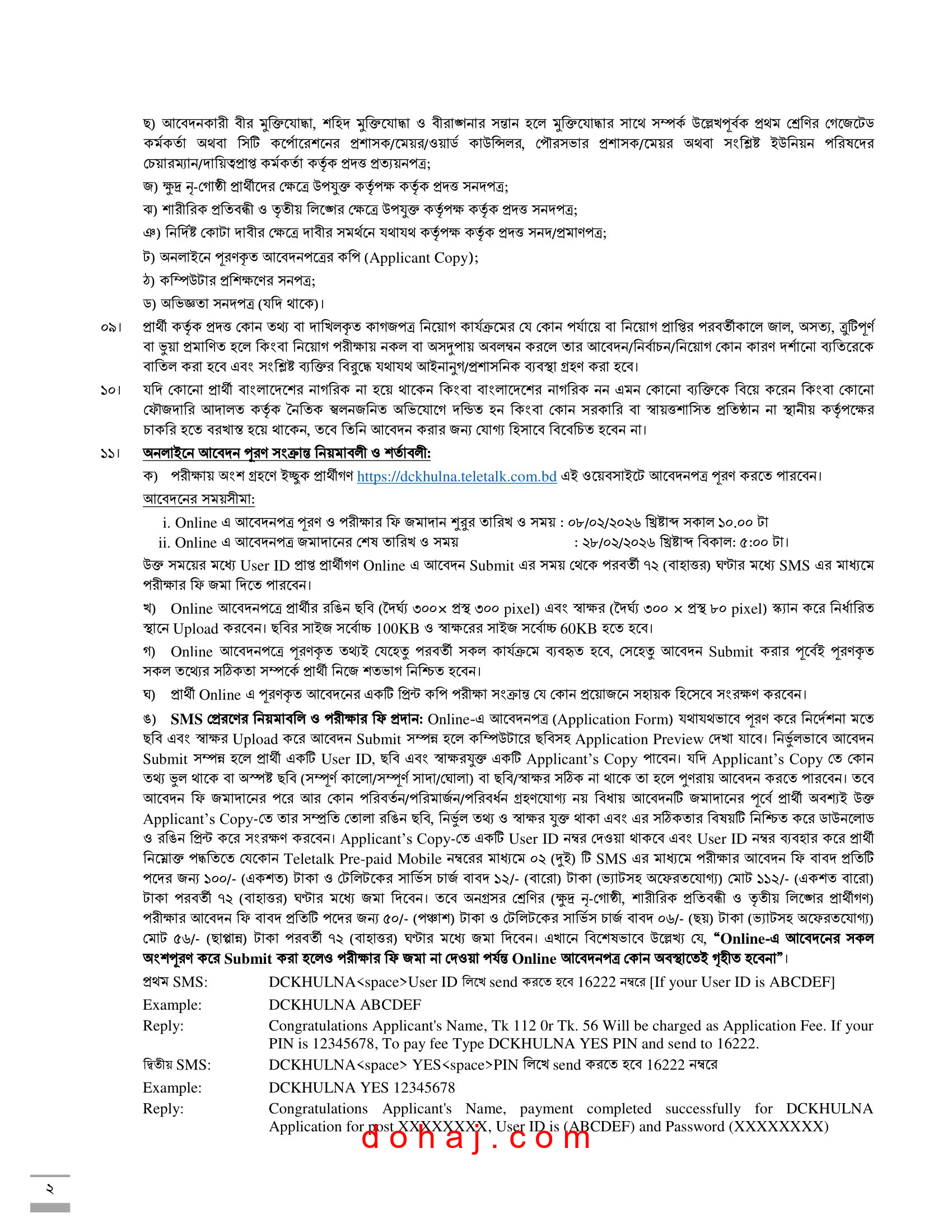 আবেদন প্রক্রিয়া: আবেদন করতে হবে অনলাইনে http://dckhulna.teletalk.com.bd ওয়েবসাইটের মাধমে অনলাইনে আবেদনপত্র পাঠাতে হবে।