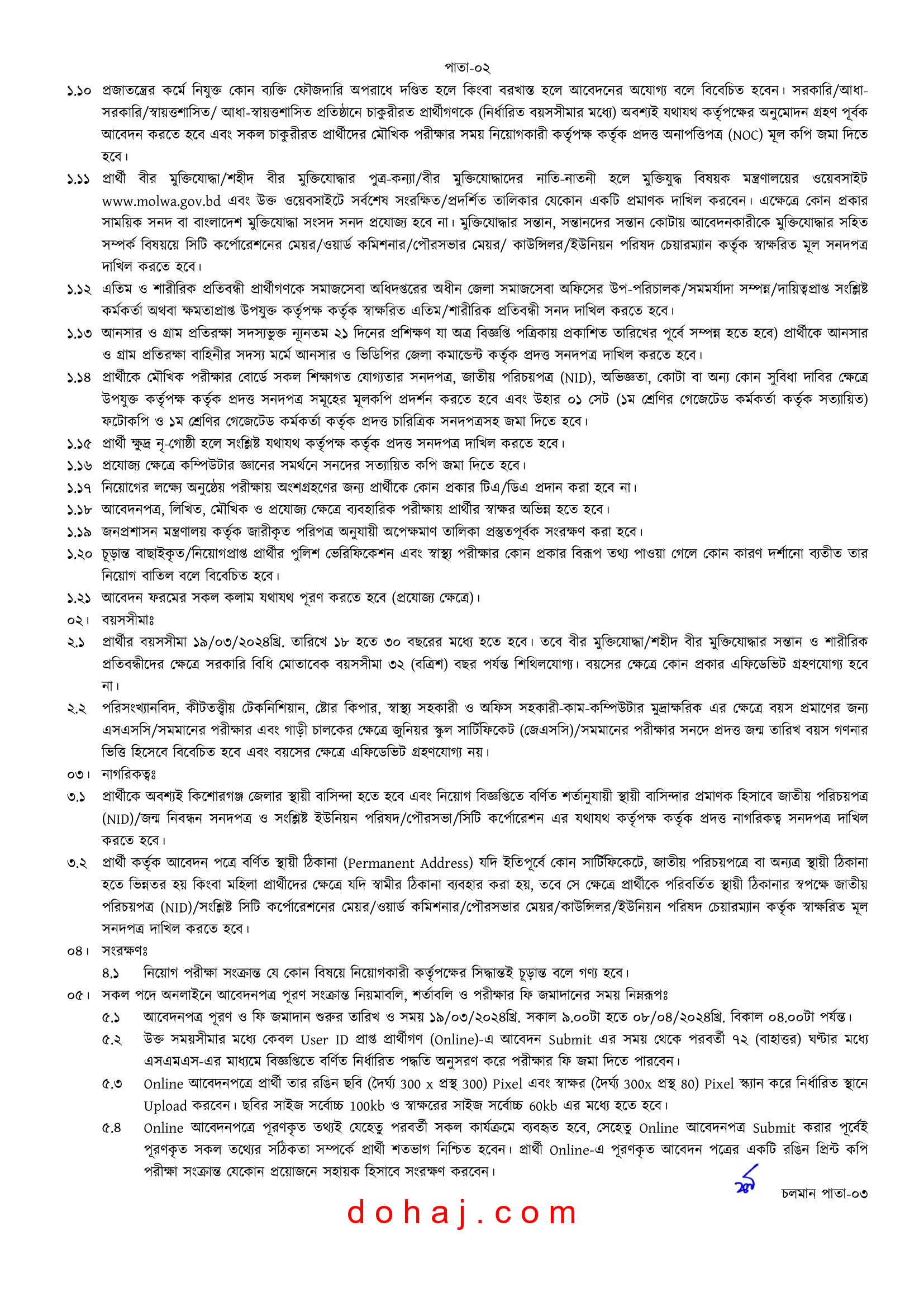 আবেদনের শেষ সময়: ০৮ এপ্রিল ২০২৪ তারিখ বিকাল ০৪:০০ টা পর্যন্ত আবেদন করা যাবে।