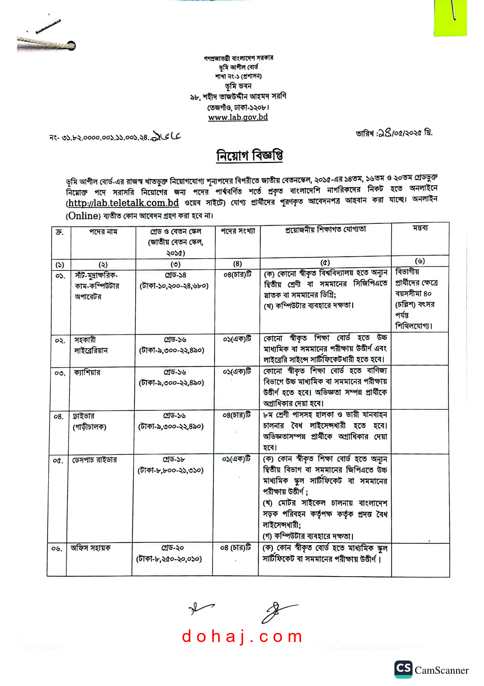 Land Appeal Board Job Circular: ভূমি আপীল বোর্ড শূন্য পদসমূহে জনবল নিয়োগের বিজ্ঞপ্তি প্রকাশ করেছে। ভূমি আপীল বোর্ড ০৬ টি পদে মোট ১৫ জনকে নিয়োগ দেবে। পদ গুলোতে নারী-পুরুষ উভয়েই আবেদন করতে পারবেন। আগ্রহী প্রার্থীরা অনলাইনে আবেদন করতে পারবেন। সম্পূর্ণ বিজ্ঞপ্তি বিস্তারিত দেওয়া হল।