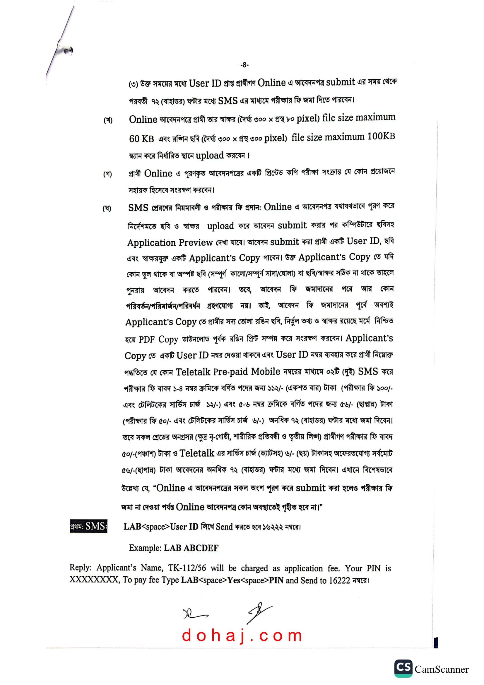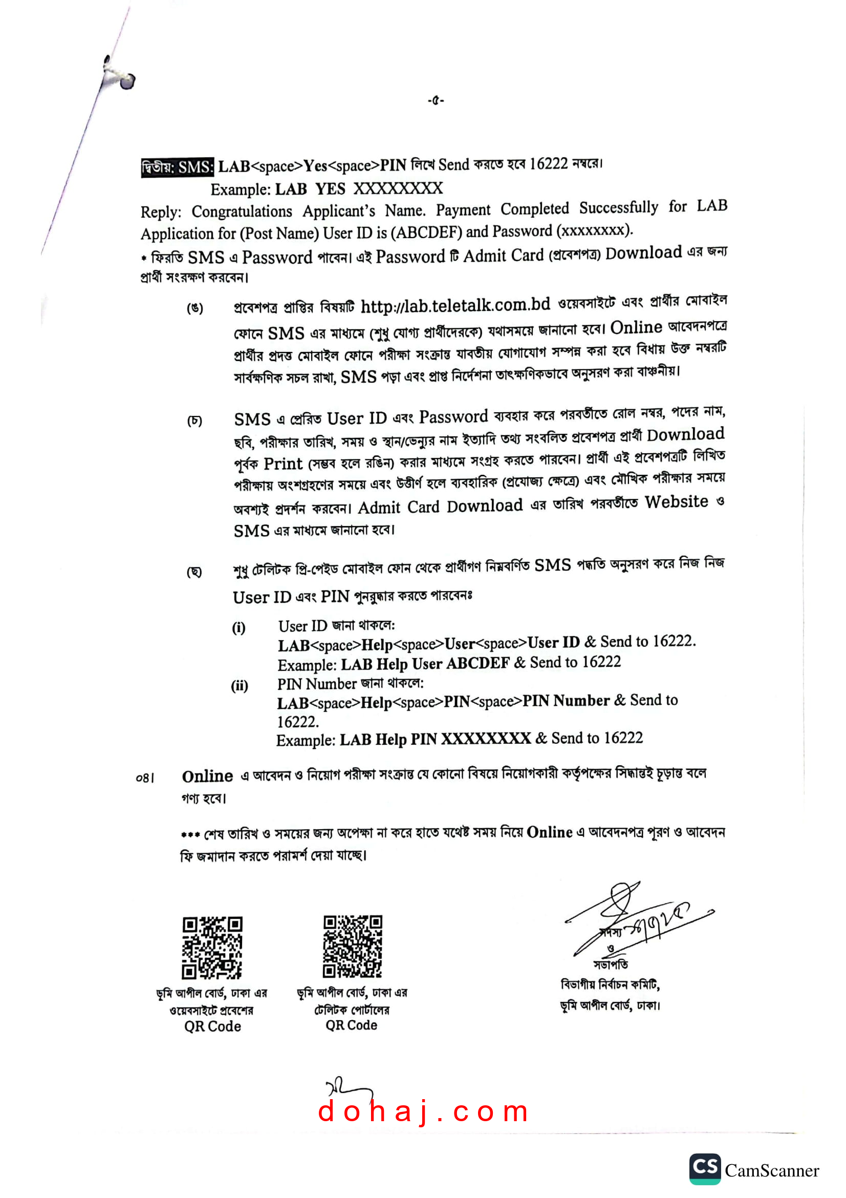 আবেদনের নিয়ম: আগ্রহী প্রার্থীরা অনলাইনে http://lab.teletalk.com.bd/ ওয়েবসাইটের মাধ্যমে আবেদন করতে পারবেন।