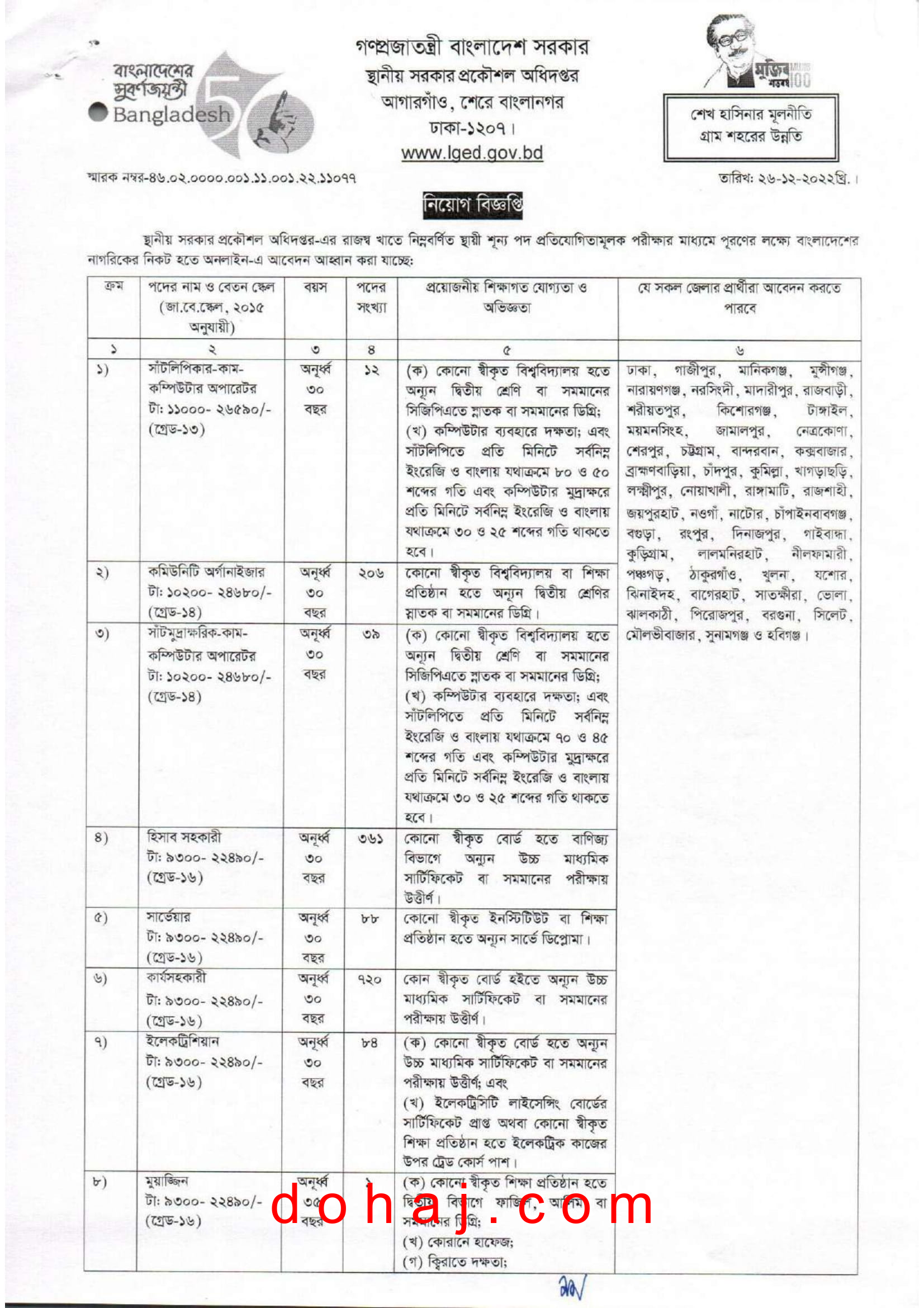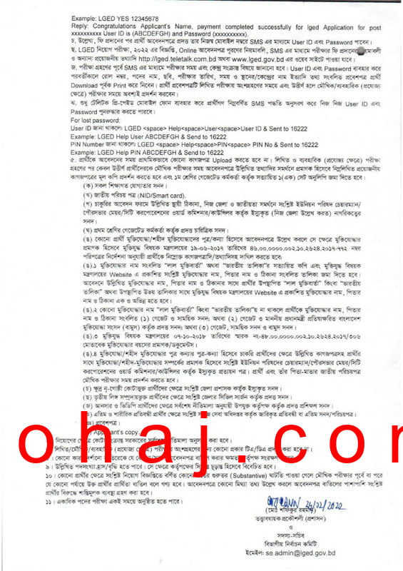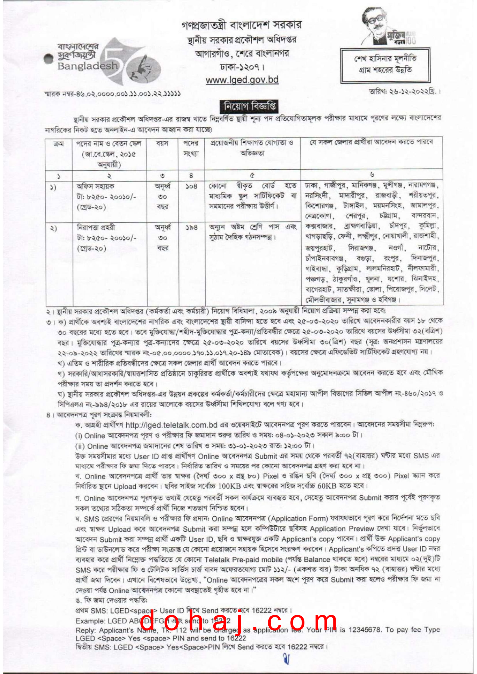আবেদনের নিয়ম: আগ্রহী প্রার্থীরা অনলাইনে http://lged.teletalk.com.bd ওয়েবসাইটের মাধ্যমে আবেন করতে পারবেন।