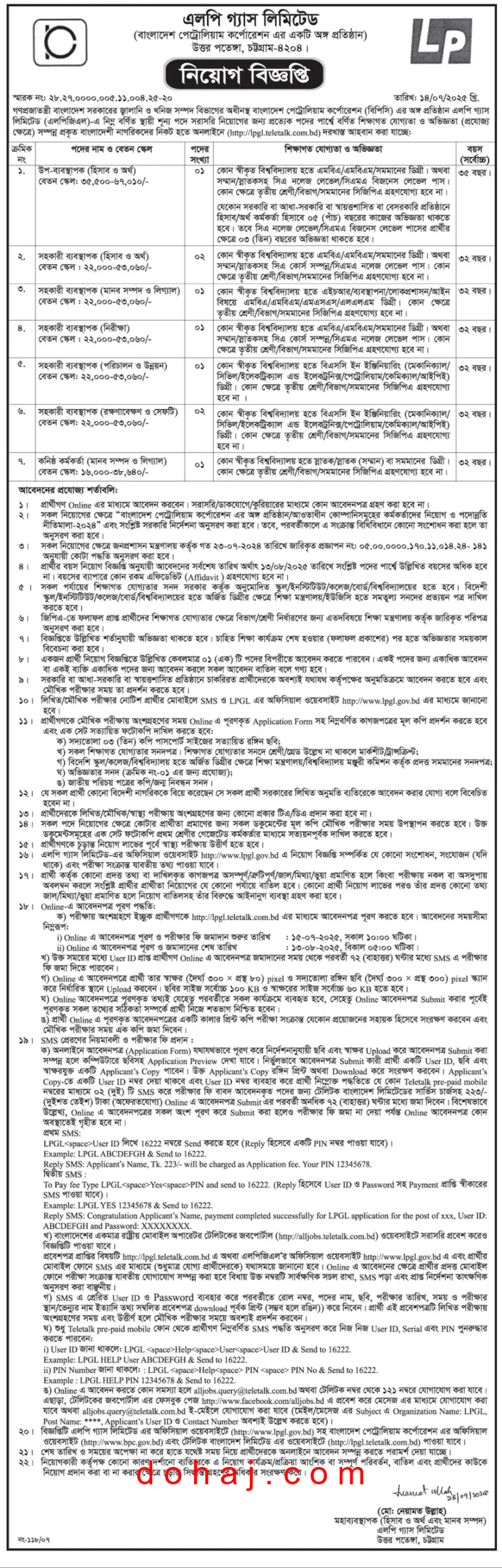 LPGL Job Circular 2025: এলপি গ্যাস লিমিটেড কর্তৃপক্ষ শূন্য পদসমূহে জনবল নিয়োগের জন্য ২টি নিয়োগ বিজ্ঞপ্তি প্রকাশ করেছে। ১ম বিজ্ঞপ্তি অনুসারে ০৬টি পদে মোট ২০ জনকে নিয়োগ দেবে। এবং, ২য় বিজ্ঞপ্তি অনুসারে ০৭টি পদে মোট ০৯ জনকে নিয়োগ দেবে। পদগুলোতে নারী-পুরুষ উভয়ই প্রার্থীরা আবেদন করতে পারবেন। আগ্রহ ও যোগ্যতা থাকলে আপনিও অনলাইনে আবেদন করতে পারেন। সম্পূর্ণ বিজ্ঞপ্তি বিস্তারিত দেওয়া হল।