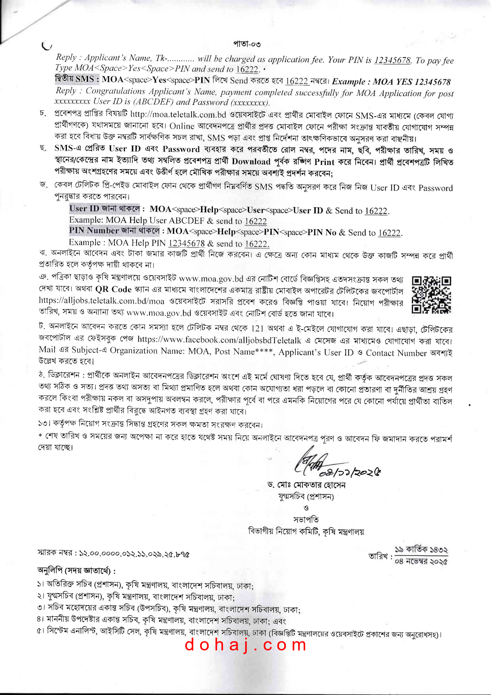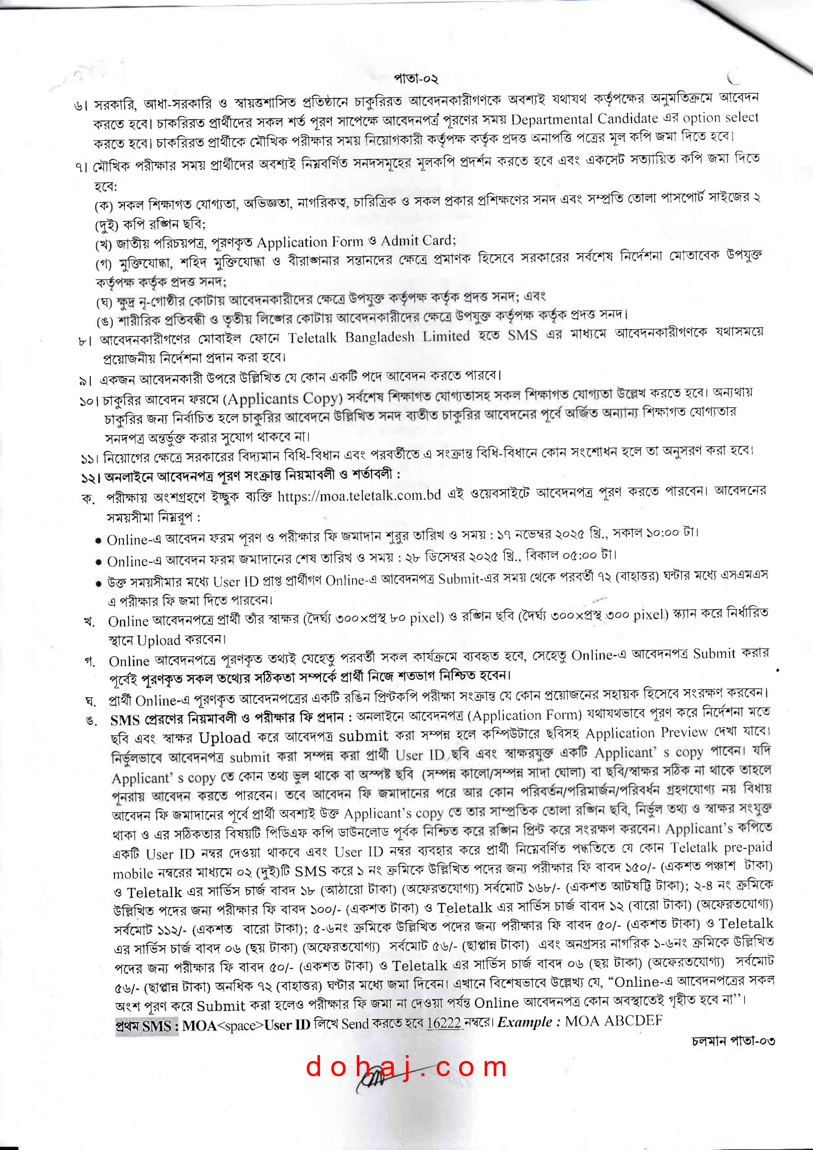 আবেদনের নিয়ম: আগ্রহী প্রার্থীরা অনলাইনে http://moa.teletalk.com.bd ওয়েবসাইটের মাধ্যমে আবেন করতে পারবেন।