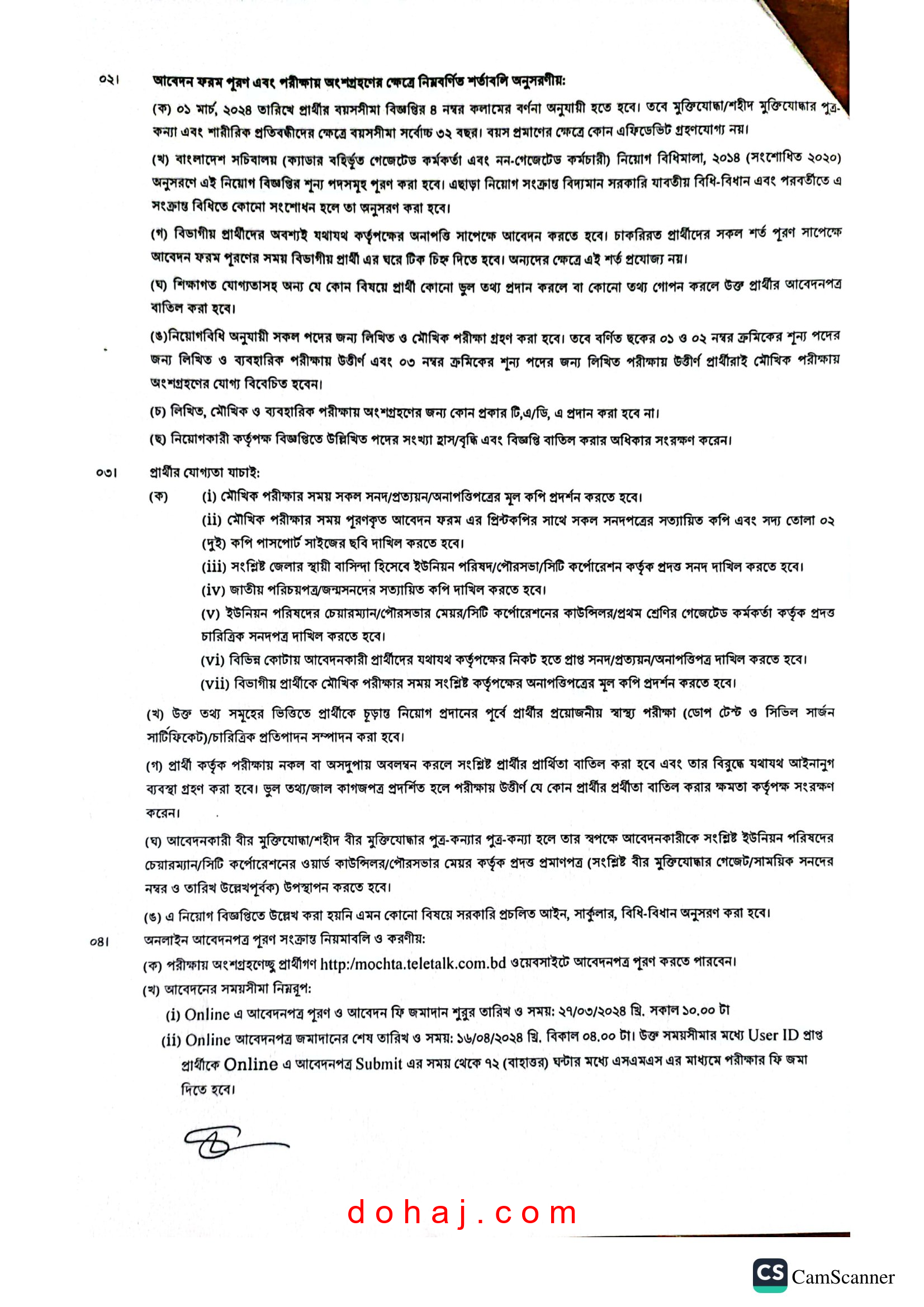 আবেদনের নিয়ম: আগ্রহী প্রার্থীরা অনলাইনে http://mochta.teletalk.com.bd ওয়েবসাইটের মাধ্যমে আবেন করতে পারবেন।