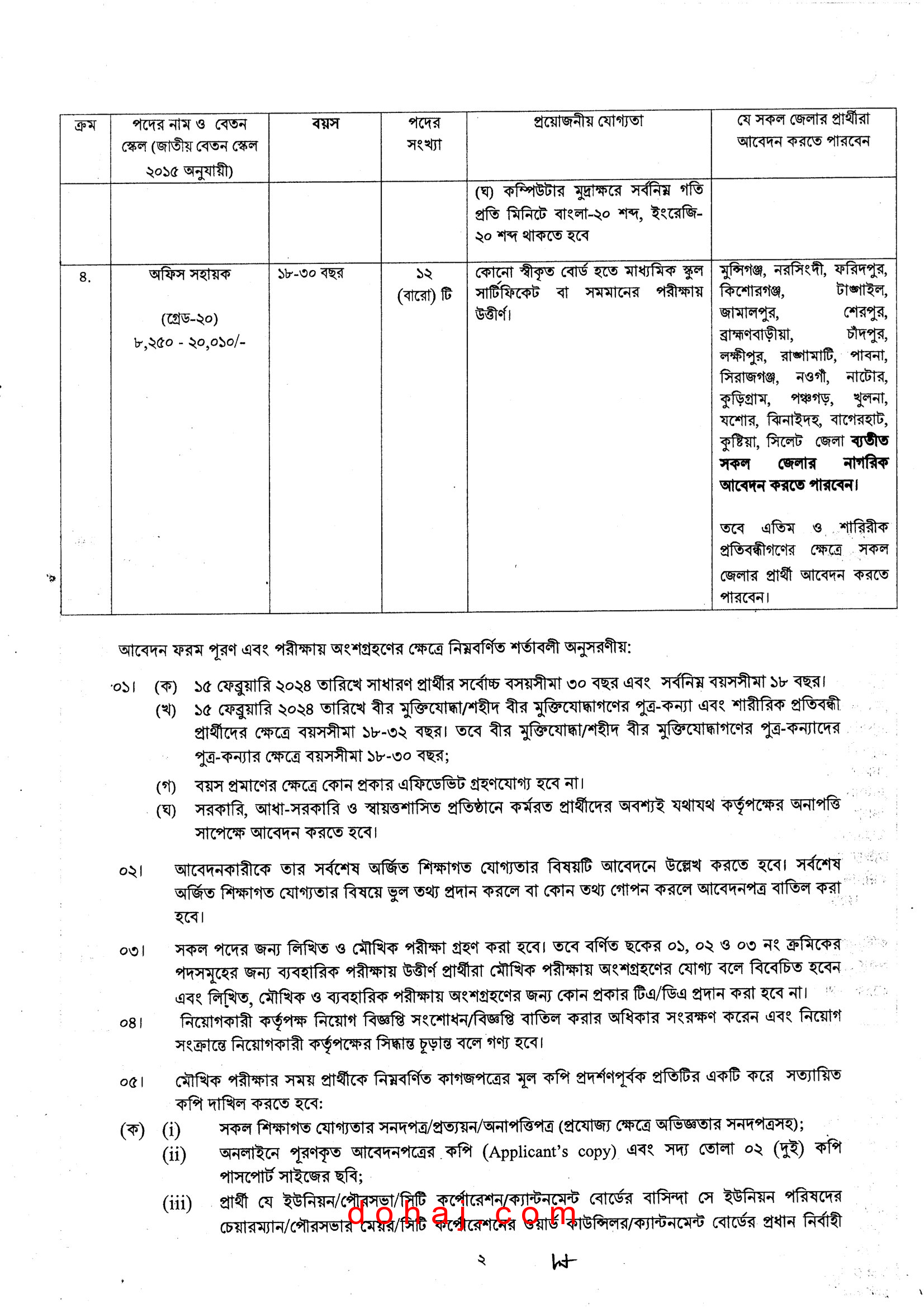 বেতন স্কেল: ৮,২৫০ – ২০,০১০ টাকা।