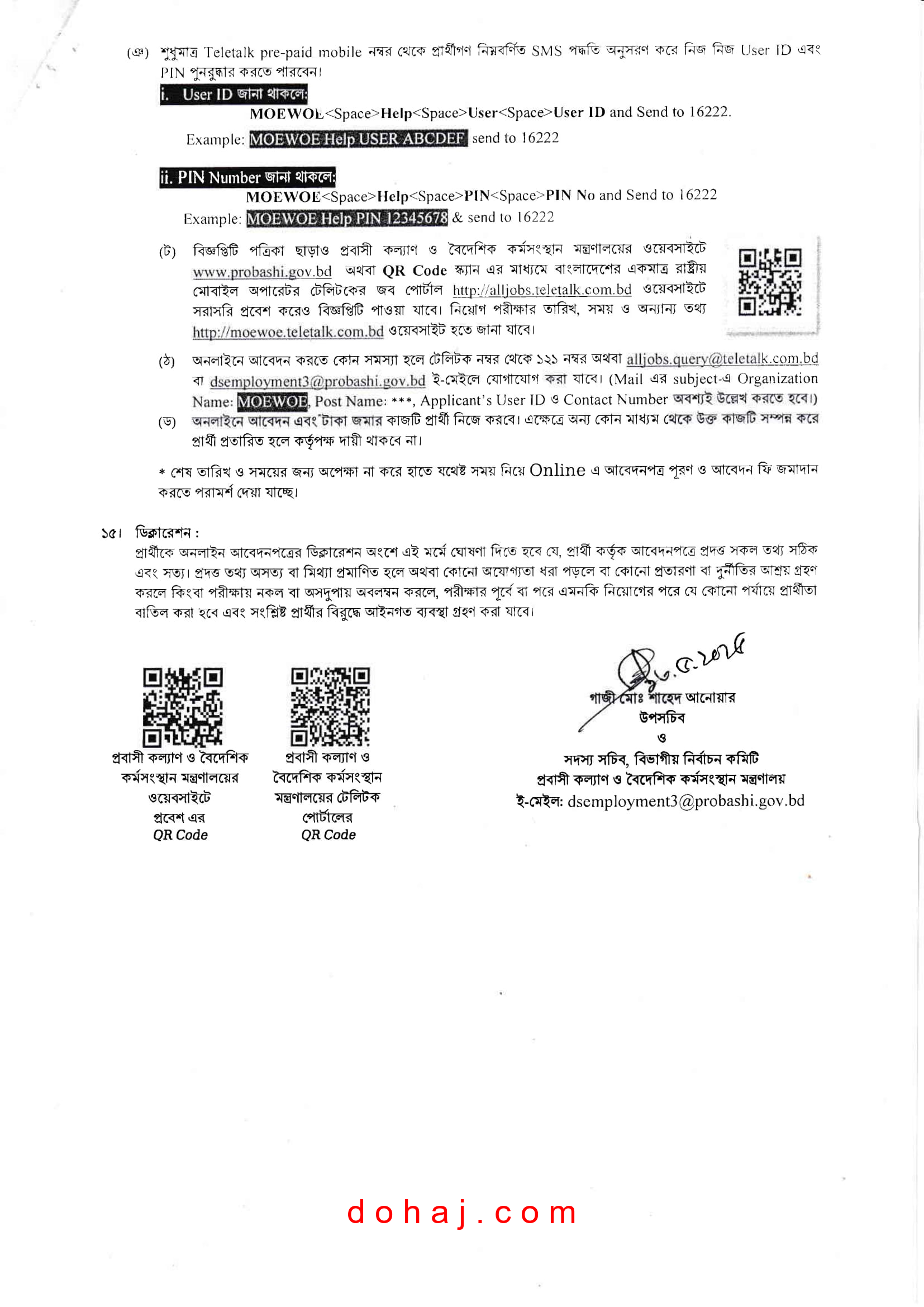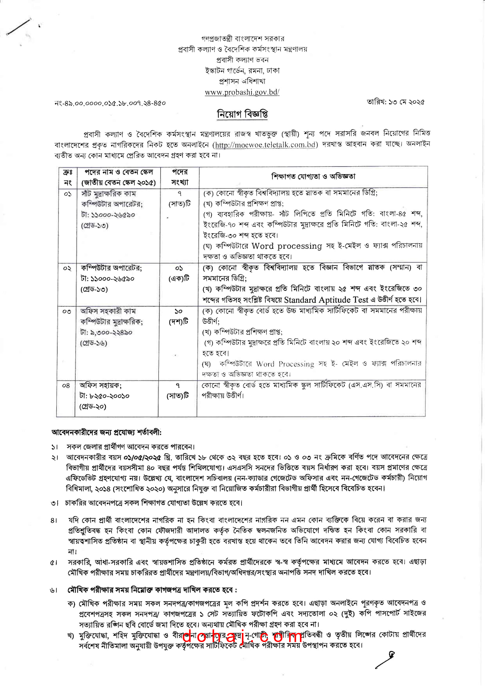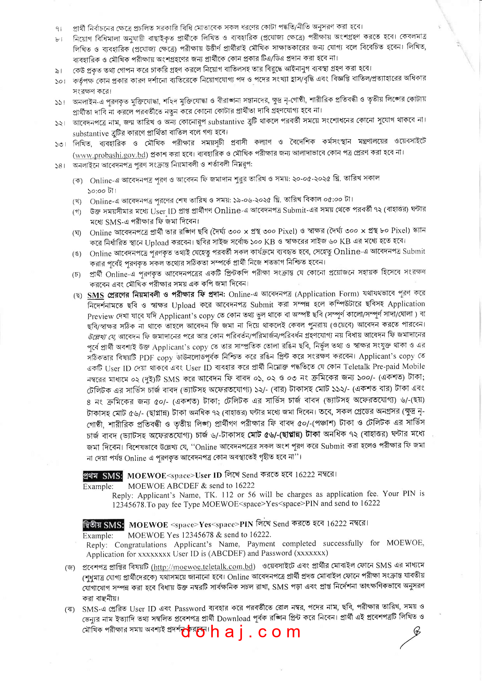 আবেদনের নিয়ম: আগ্রহী প্রার্থীরা অনলাইনে http://moewoe.teletalk.com.bd ওয়েবসাইটের মাধ্যমে আবেদন করতে পারবেন।
