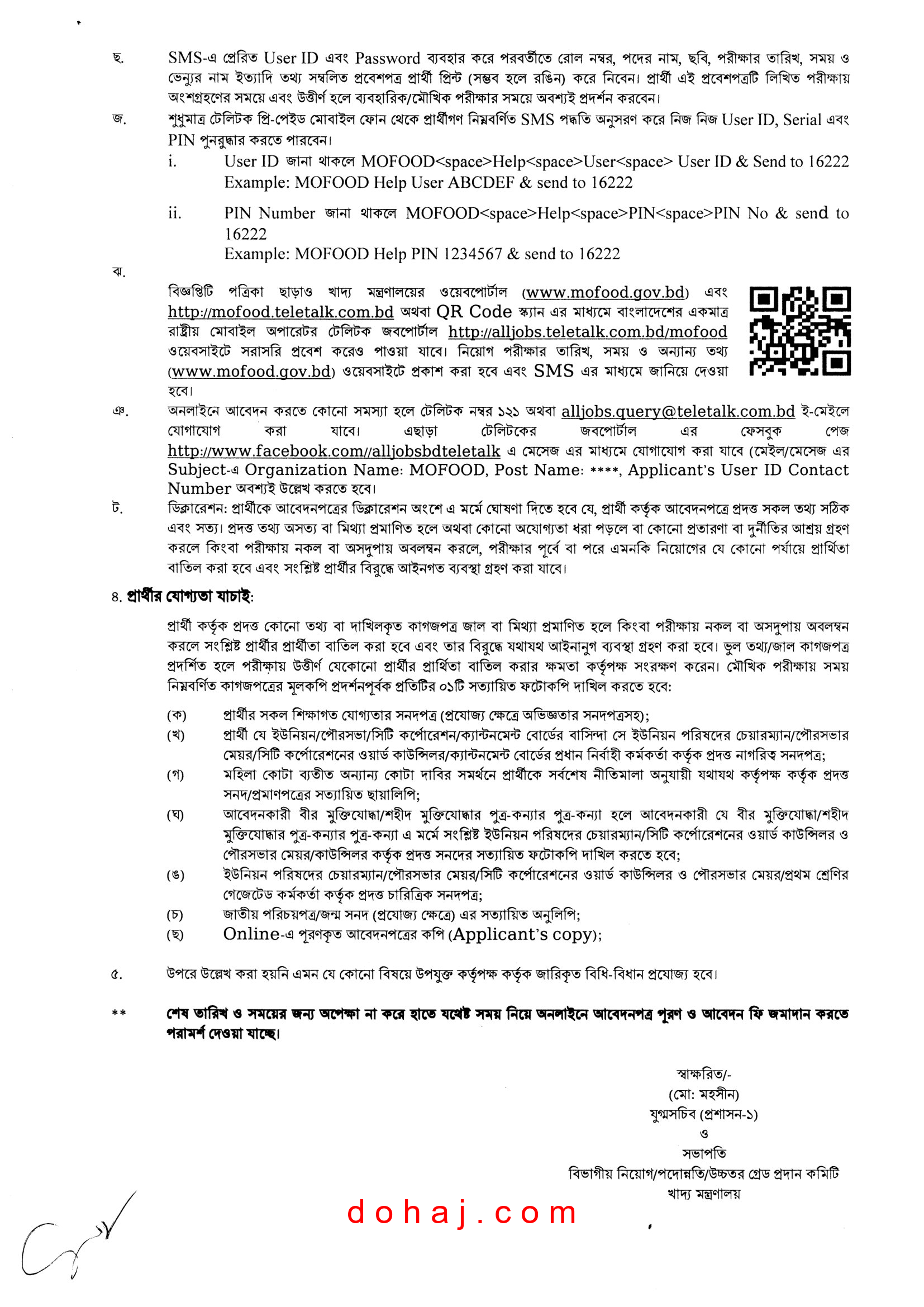 আবেদনের নিয়ম: আগ্রহী প্রার্থীরা অনলাইনে http://mofood.teletalk.com.bd ওয়েবসাইটের মাধ্যমে আবেদন করতে পারবেন।