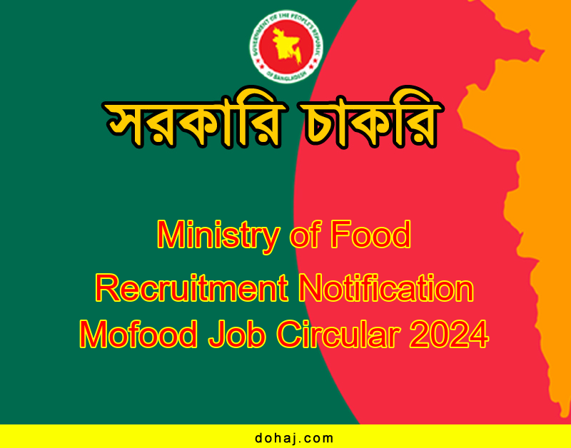 Mofood Job Circular 2024: খাদ্য মন্ত্রণালয়ের শূন্য পদসমূহে জনবল নিয়োগ দেয়া হবে। খাদ্য মন্ত্রণালয় ০৫ টি পদে মোট ১৯ জনকে নিয়োগ দেবে। উক্ত পদ গুলোতে নারী- পুরুষ উভয়ই আবেদন করতে পারবেন। আগ্রহী প্রার্থীরা অনলাইনে আবেদন করতে পারবেন। সম্পূর্ণ বিজ্ঞপ্তি (Mofood Job Circular 2024) বিস্তারিত দেওয়া হল। সরকারি বেসরকারি সকল চাকরির খবর সবার আগে পড়তে আমাদের চাকরির খবর পেজে বিজিট করুন।
