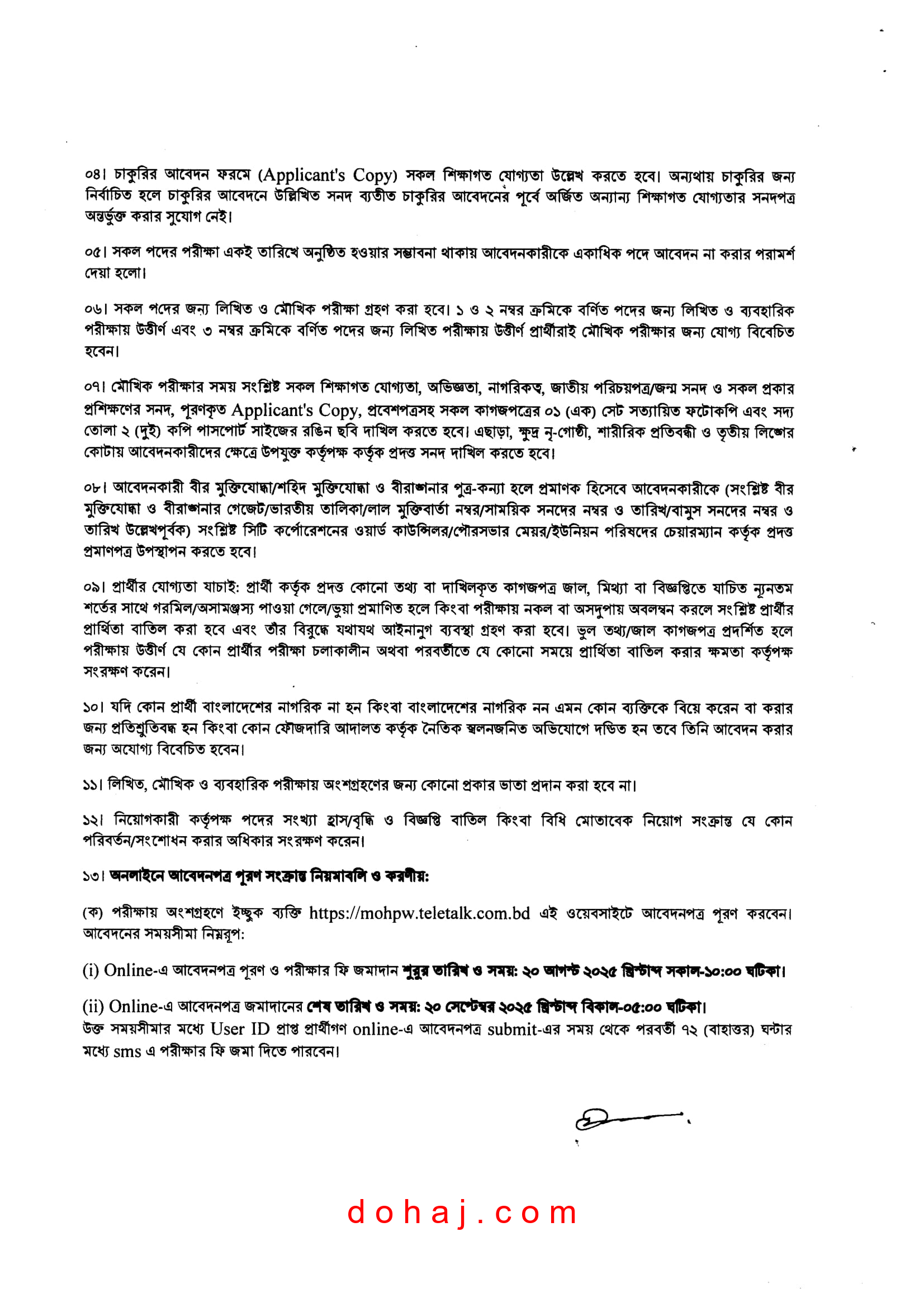 আবেদনের নিয়ম: আগ্রহী প্রার্থীরা অনলাইনে http://mohpw.teletalk.com.bd ওয়েবসাইটের মাধ্যমে আবেন করতে পারবেন।