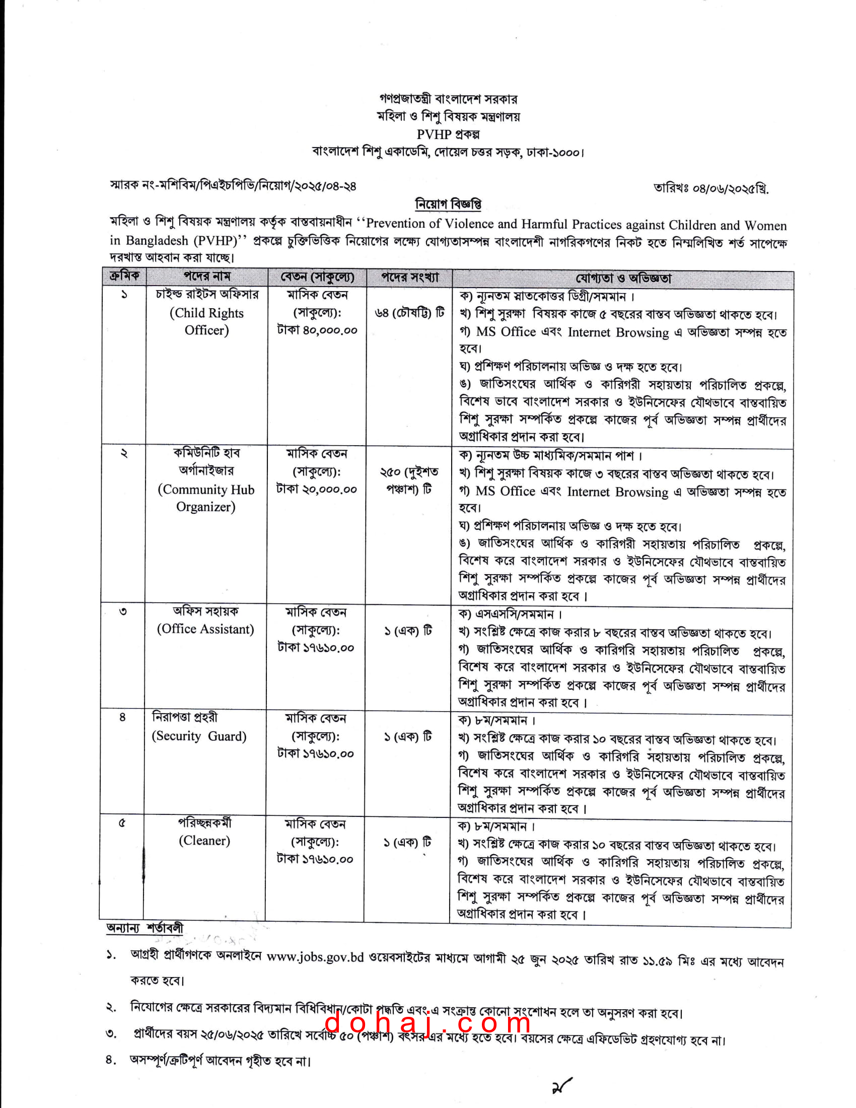 মহিলা ও শিশু বিষয়ক মন্ত্রণালয় এর শূন্য পদসমূহে জনবল নিয়োগ দেয়া হবে। মহিলা ও শিশু বিষয়ক মন্ত্রণালয় ০৫ টি পদে মোট ৩১৭ জনকে নিয়োগ দেবে। পদগুলোতে নারী ও পুরুষ সকল প্রার্থীরা আবেদন করতে পারবেন। আগ্রহী প্রার্থীরা অনলাইনে আবেদন করতে পারবেন। আগ্রহ ও যোগ্যতা থাকলে আপনিও আবেদন করতে পারেন। সম্পূর্ণ বিজ্ঞপ্তি বিস্তারিত দেওয়া হল।