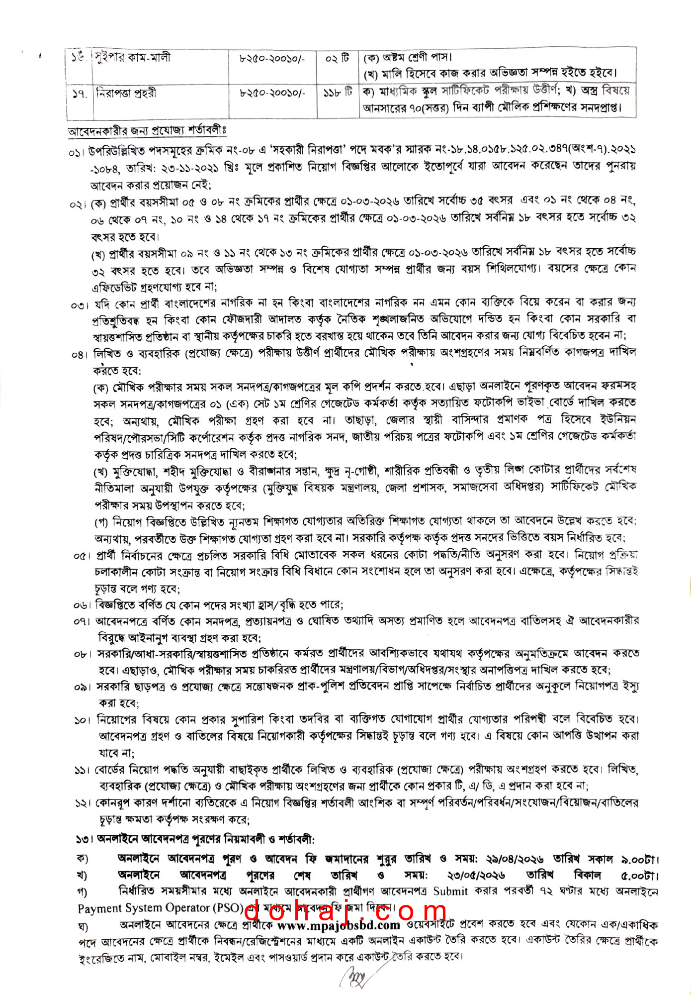 আবেদনের শেষ সময়: ২৩ মে ২০২৬ তারিখ বিকাল ০৫:০০ টা পর্যন্ত আবেদন করা যাবে।