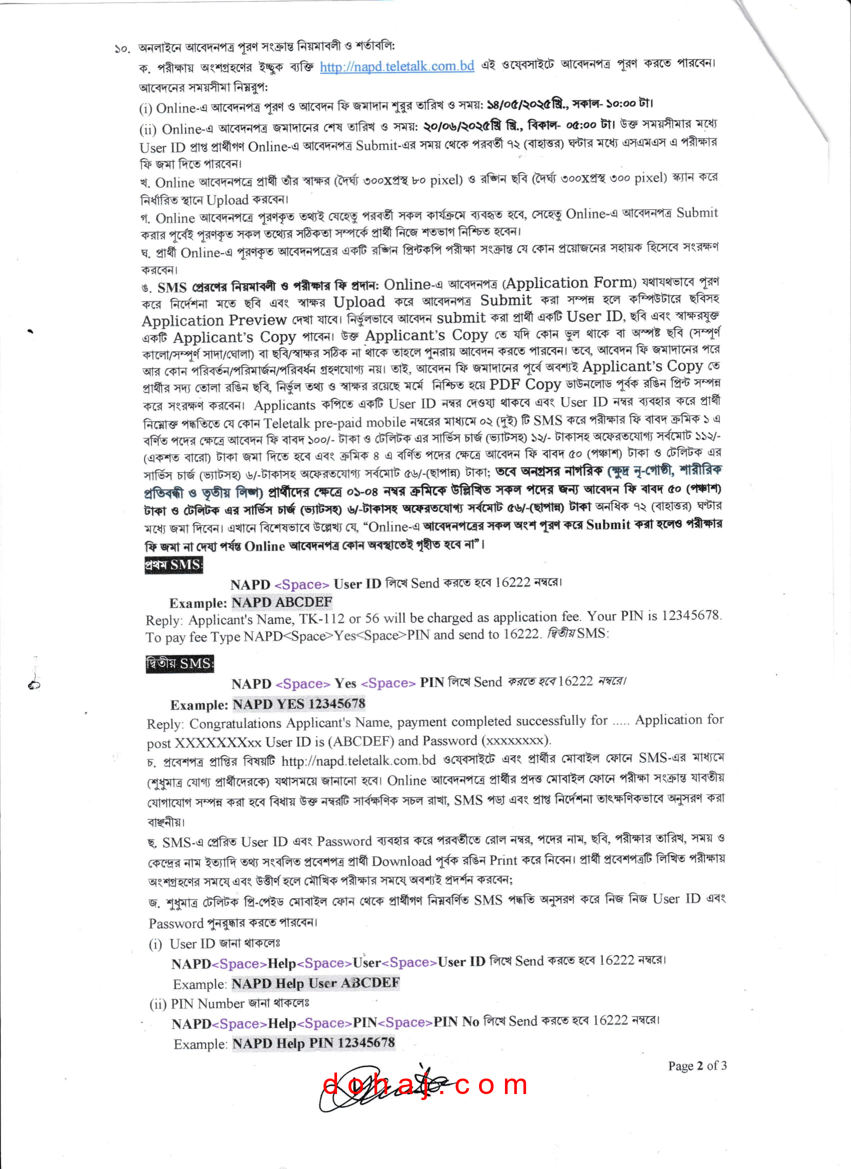 আবেদন প্রক্রিয়া: আগ্রহী প্রার্থীরা অনলাইনে http://napd.teletalk.com.bd এই ওয়েবসাইটে গিয়ে আবেদনপত্র পূরণ করতে পারবেন।