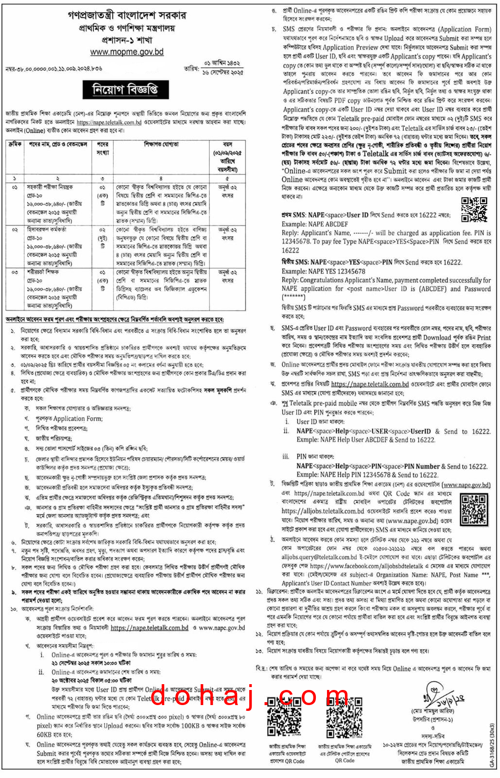 আবেদনের নিয়ম: আগ্রহী প্রার্থীরা অনলাইনে http://nape.teletalk.com.bd ওয়েবসাইটের মাধ্যমে আবেন করতে পারবেন।