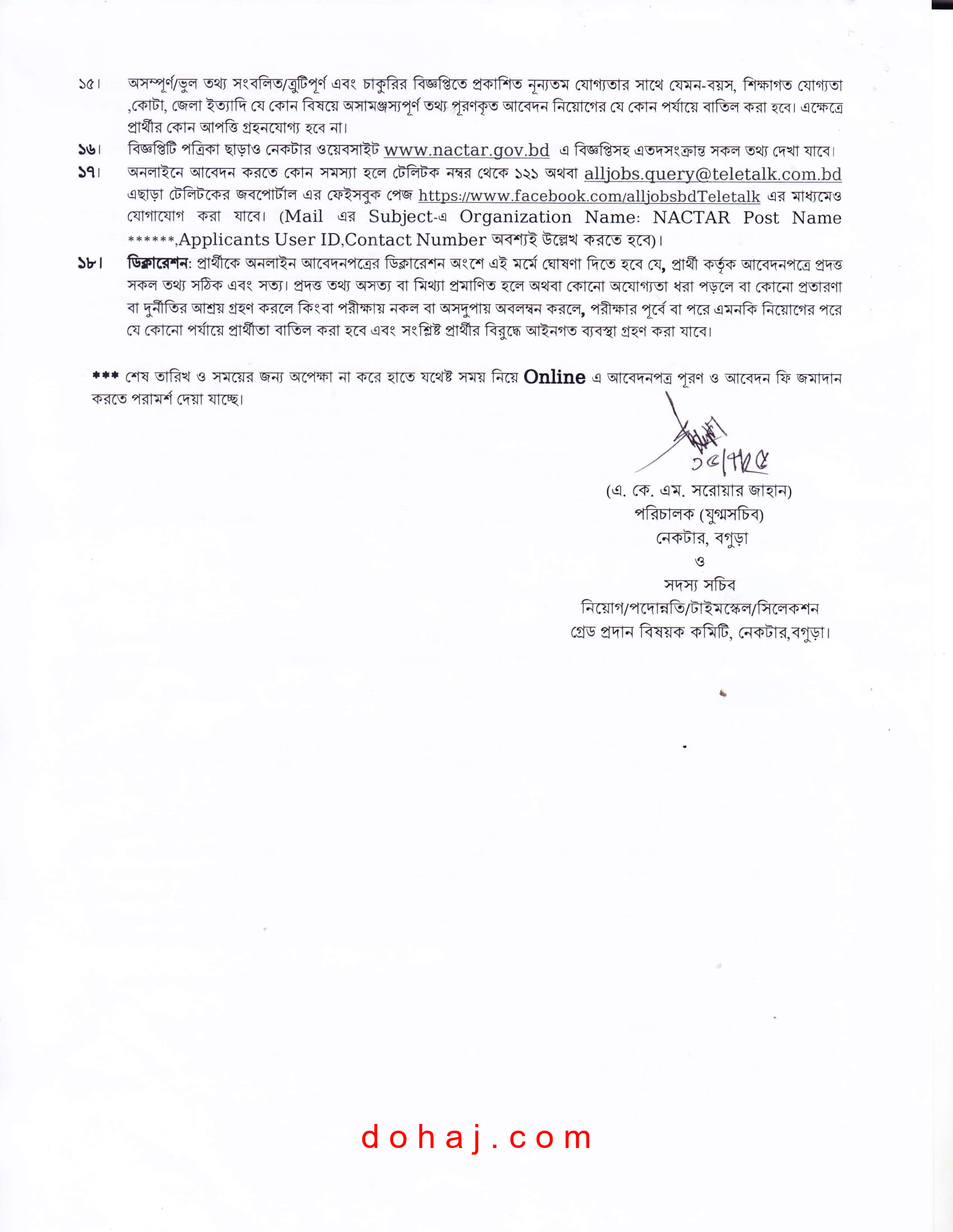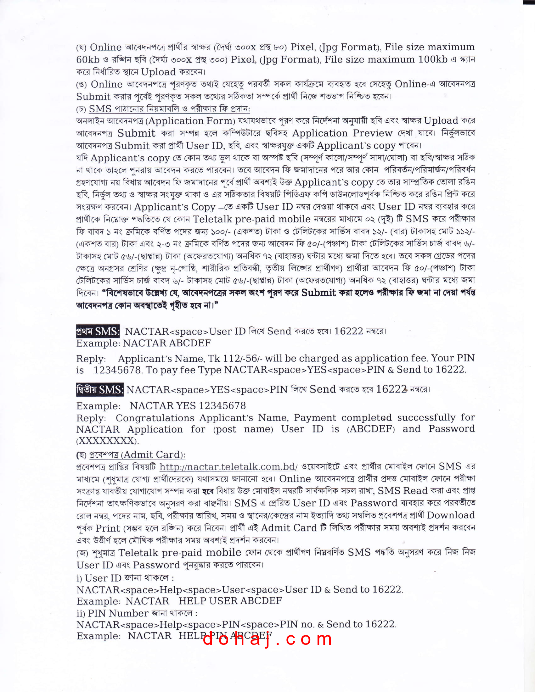 আবেদন প্রক্রিয়া: আগ্রহী প্রার্থীরা অনলাইনে http://nactar.teletalk.com.bd/ এই ওয়েবসাইটে গিয়ে আবেদনপত্র পূরণ করতে পারবেন।
