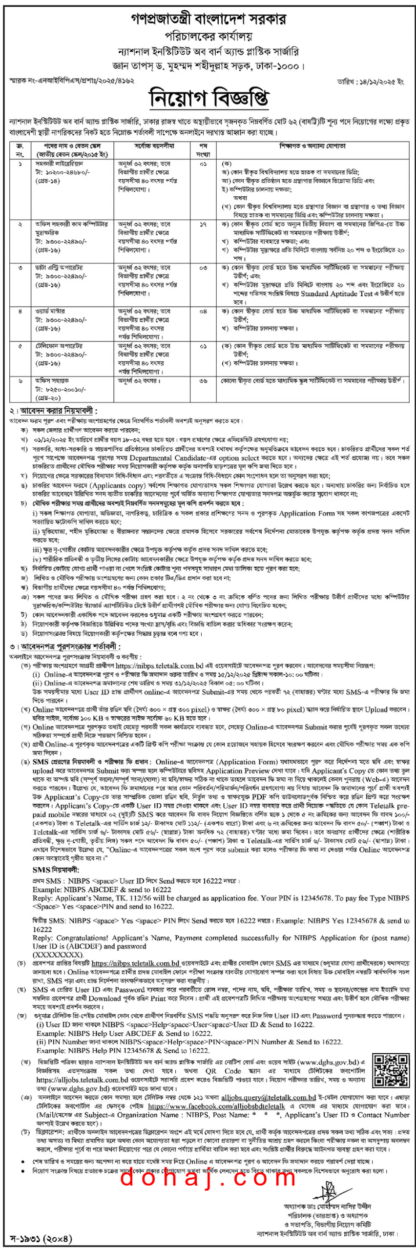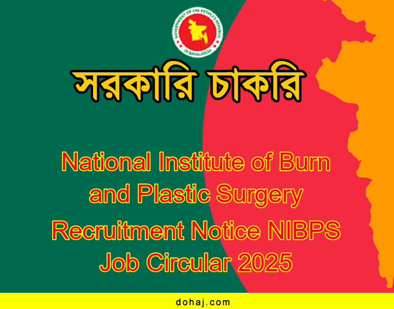 NIBPS Job Circular 2025: ন্যাশনাল ইনস্টিটিউট অব বার্ন অ্যান্ড প্লাস্টিক সার্জারি এর শূন্য পদসমূহে জনবল নিয়োগ দেয়া হবে। ন্যাশনাল ইনস্টিটিউট অব বার্ন অ্যান্ড প্লাস্টিক সার্জারি ০৬ টি পদে মোট ৬২ জনকে নিয়োগ দেবে। পদগুলোতে বাংলাদেশের সকল জেলার নারী ও পুরুষ উভয়েই প্রার্থীরা আবেদন করতে পারবেন। আগ্রহী প্রার্থীরা অনলাইনে আবেদন করতে পারবেন। আবেদন প্রক্রিয়াসহ সম্পূর্ণ বিজ্ঞপ্তি বিস্তারিত দেওয়া হল।