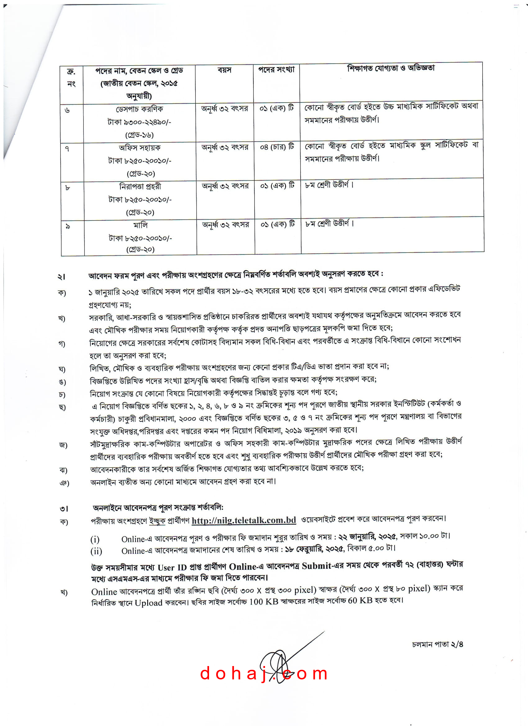 আবেদনের শেষ সময়: ১৮ ফেব্রুয়ারি ২০২৫ তারিখ বিকাল ০৫:০০ টা পর্যন্ত আবেদন করা যাবে।