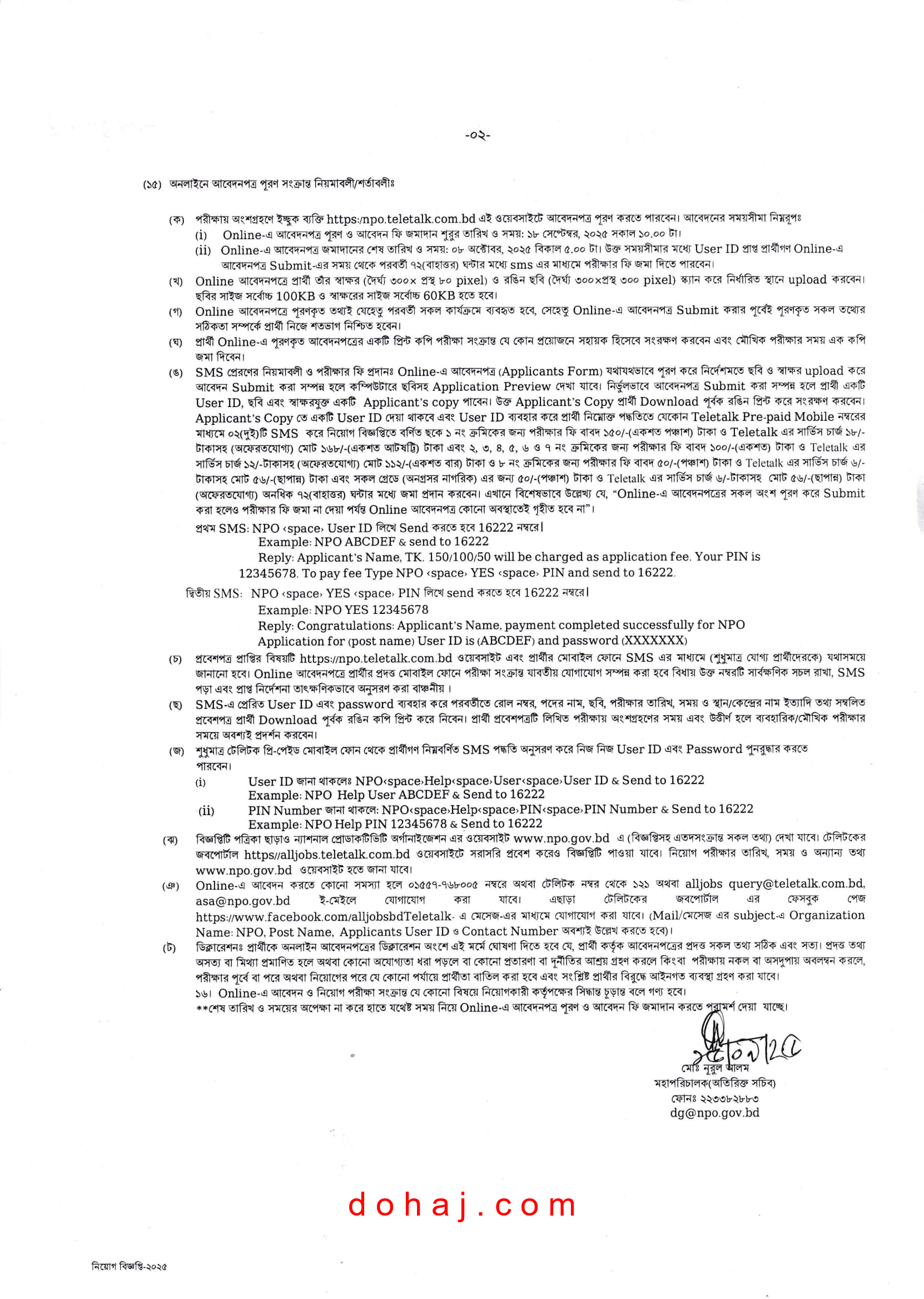 আবেদনের নিয়ম: আগ্রহী প্রার্থীরা অনলাইনে http://npo.teletalk.com.bd ওয়েবসাইটের মাধ্যমে আবেন করতে পারবেন।