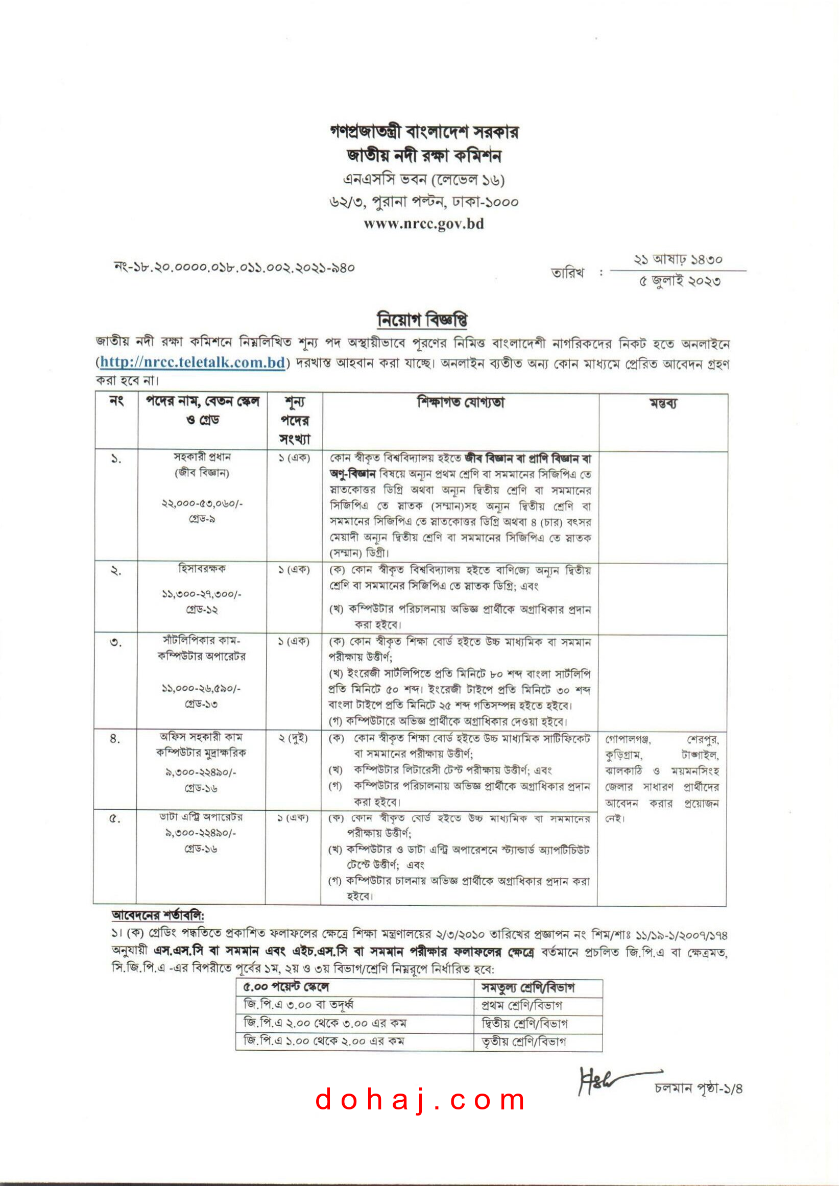 NRCCB job circular: জাতীয় নদী রক্ষা কমিশনের শূন্য পদসমূহে জনবল নিয়োগ দেওয়া হবে। জাতীয় নদী রক্ষা কমিশন ০৫ টি পদে মোট ০৬ জনকে নিয়োগ দেবে। উক্ত পদগুলোতে নারী-পুরুষ উভয়ই আবেদন করতে পারবেন। আগ্রহী প্রার্থীরা অনলাইনে আবেদন করতে পারবেন। আগ্রহ ও যোগ্যতা থাকলে আপনিও আবেদন করতে পারেন। আবেদন প্রক্রিয়াসহ সম্পূর্ণ বিজ্ঞপ্তি বিস্তারিত দেওয়া হল।