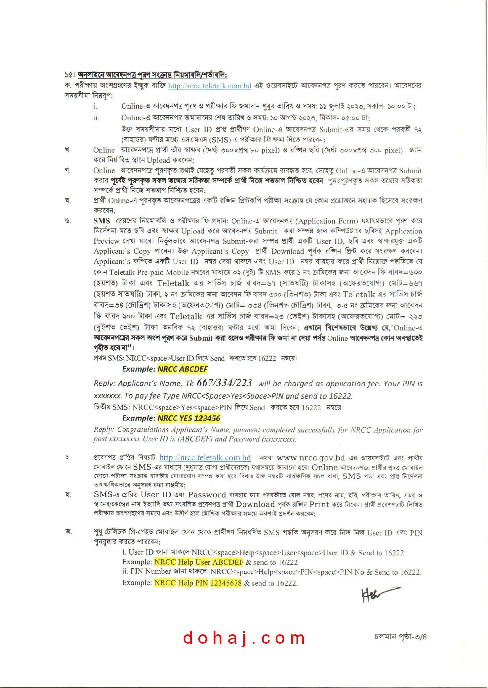 আবেদন প্রক্রিয়া: আবেদন করতে হবে অনলাইনে http://nrcc.teletalk.com.bd ওয়েবসাইটের মাধমে অনলাইনে আবেদনপত্র পাঠাতে হবে।