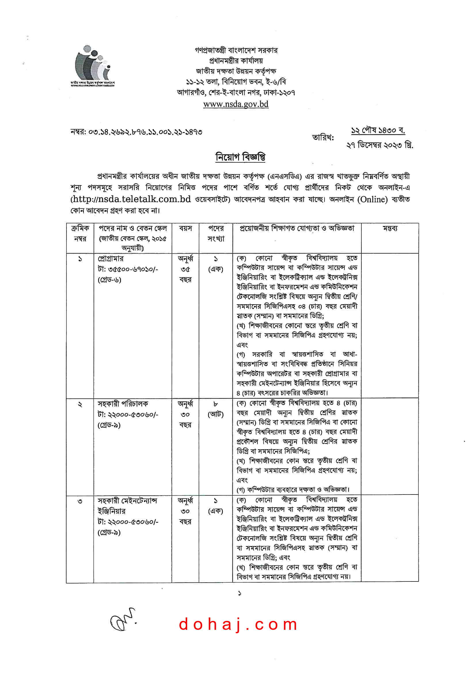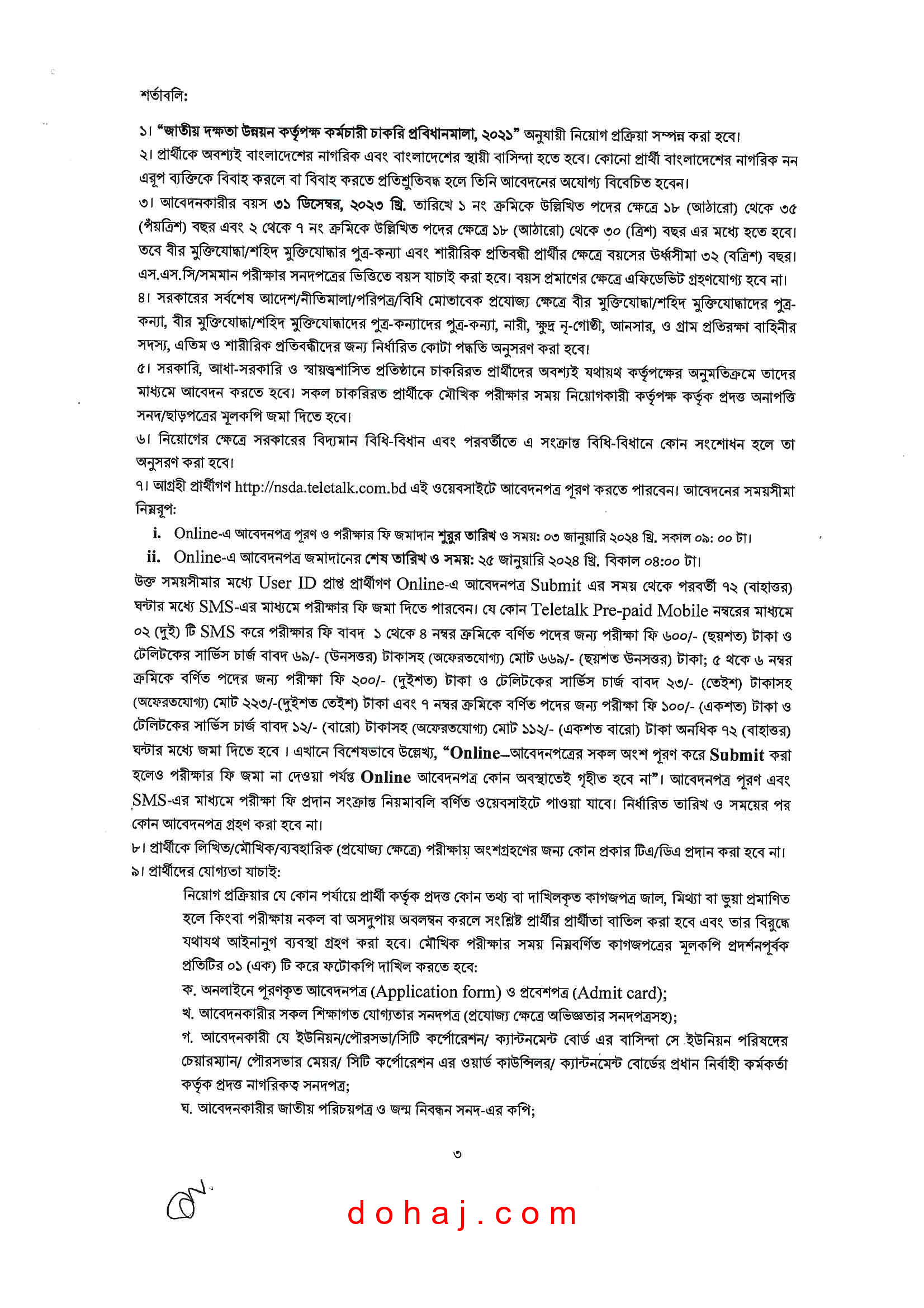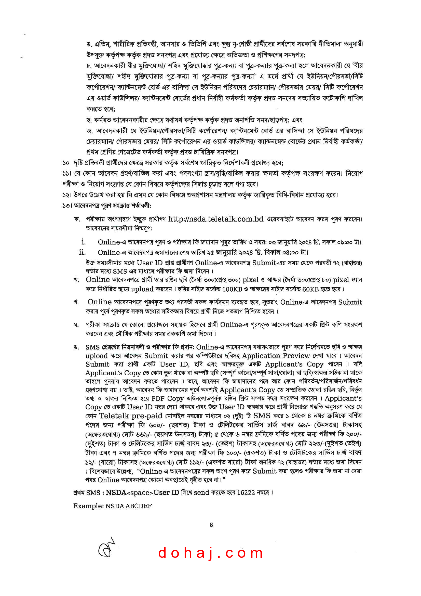 আবেদন প্রক্রিয়া: আগ্রহী প্রার্থীরা অনলাইনে http://nsda.teletalk.com.bd এই ওয়েবসাইটে গিয়ে আবেদনপত্র পূরণ করতে পারবেন।
