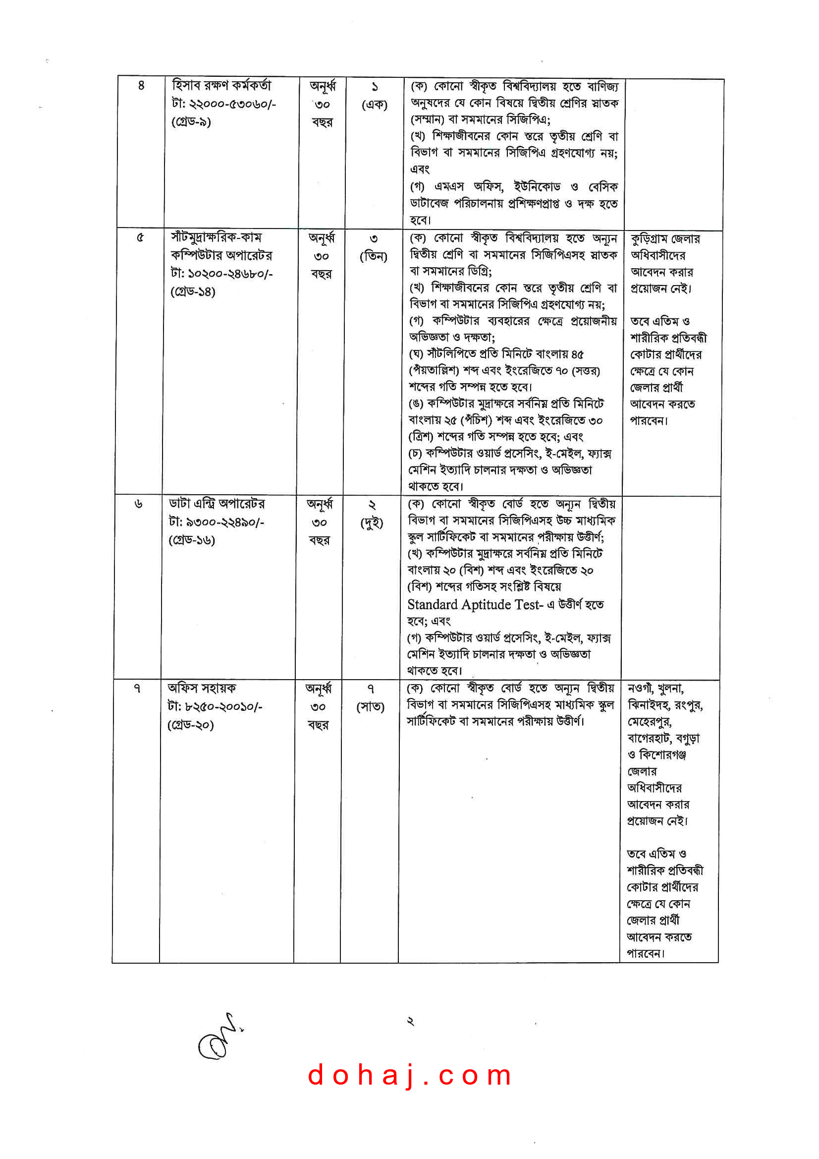 শিক্ষাগত যোগ্যতা: বাণিজ্য অনুষদের যে কোন বিষয়ে স্নাতক (সম্মান) বা সমমানের ডিগ্রি।