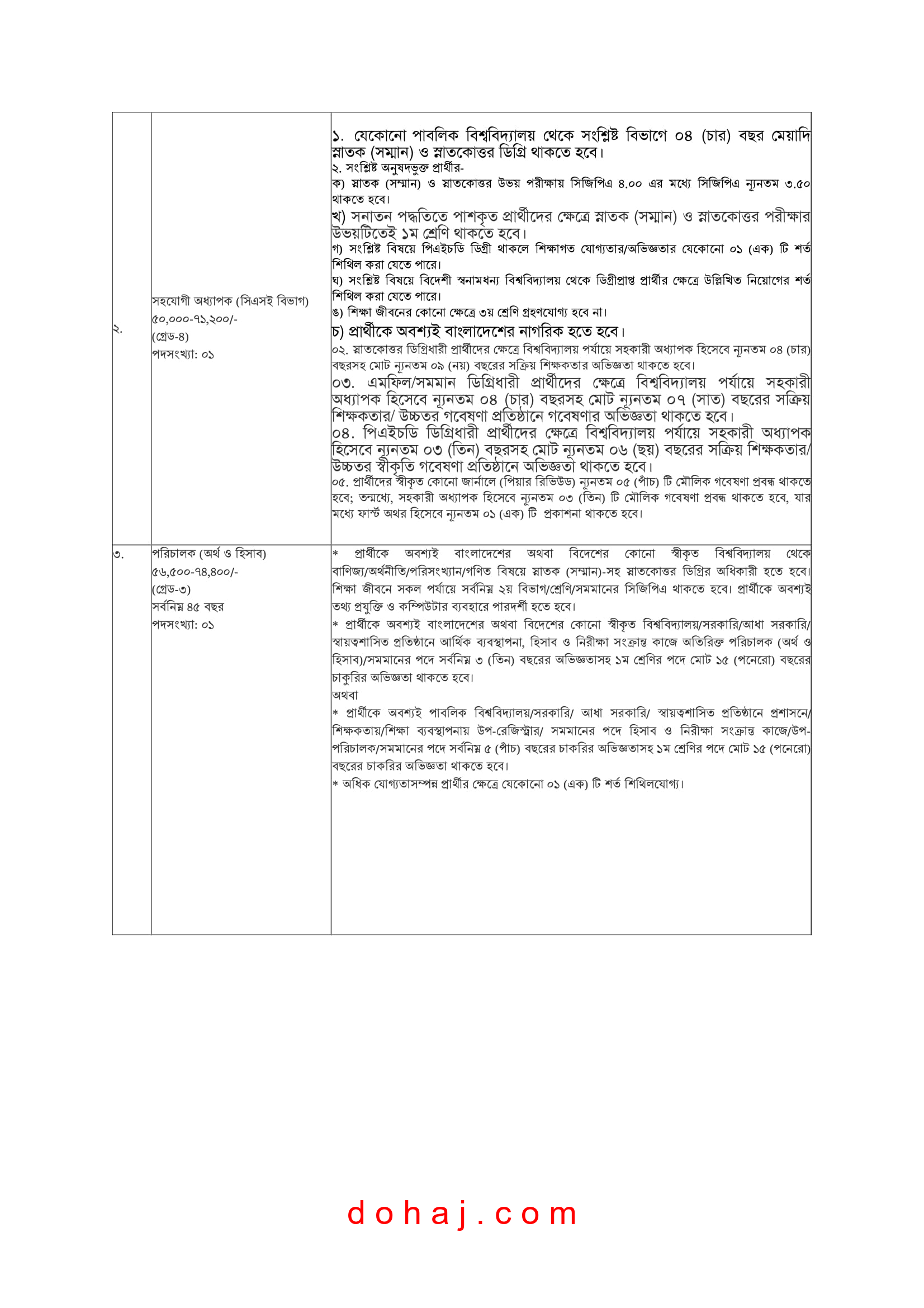 পদের নাম: সহকারী অধ্যাপক (সিএসসি বিভাগ)