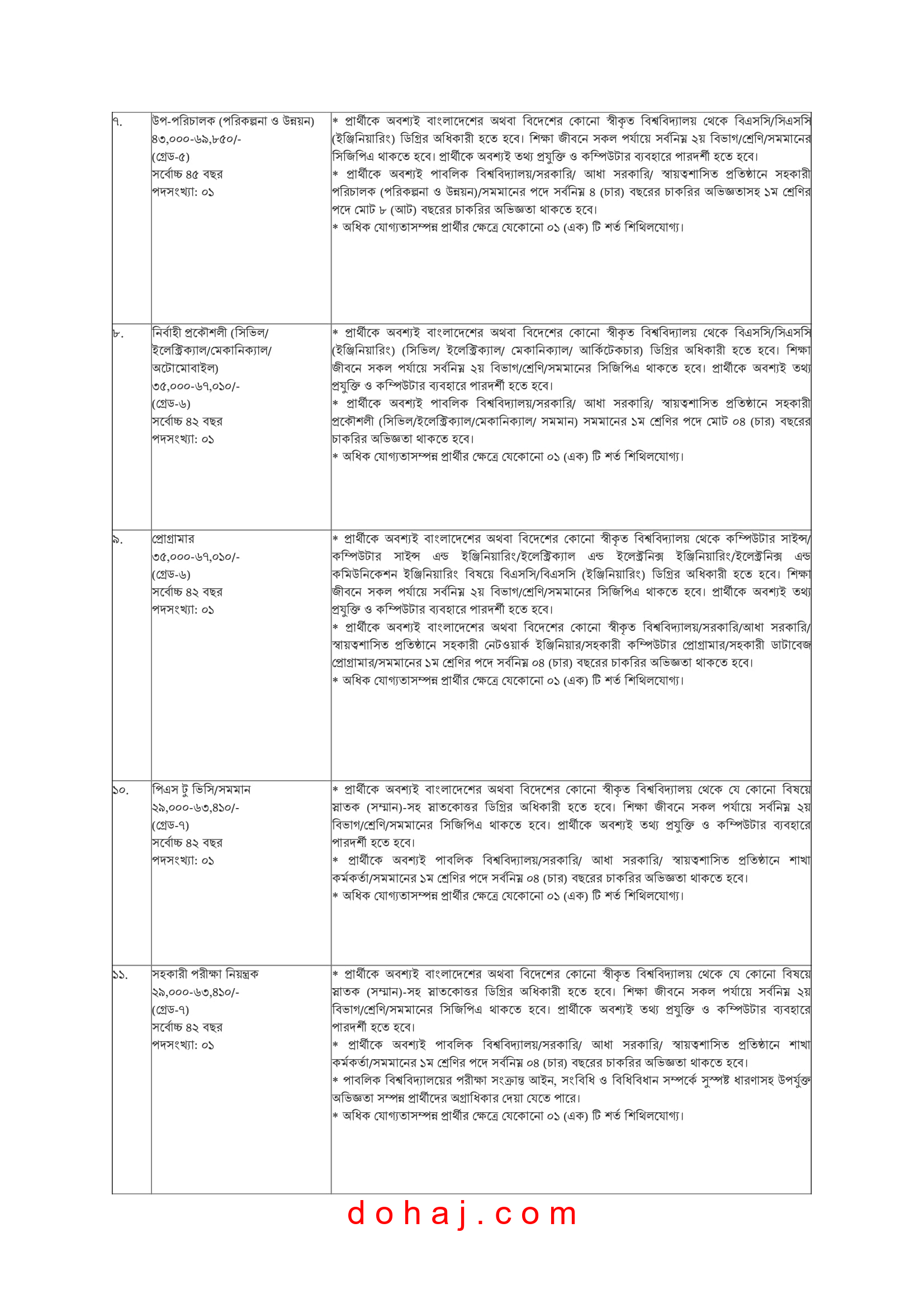 বেতন: ২৯০০০-৬৩৪১০ টাকা।