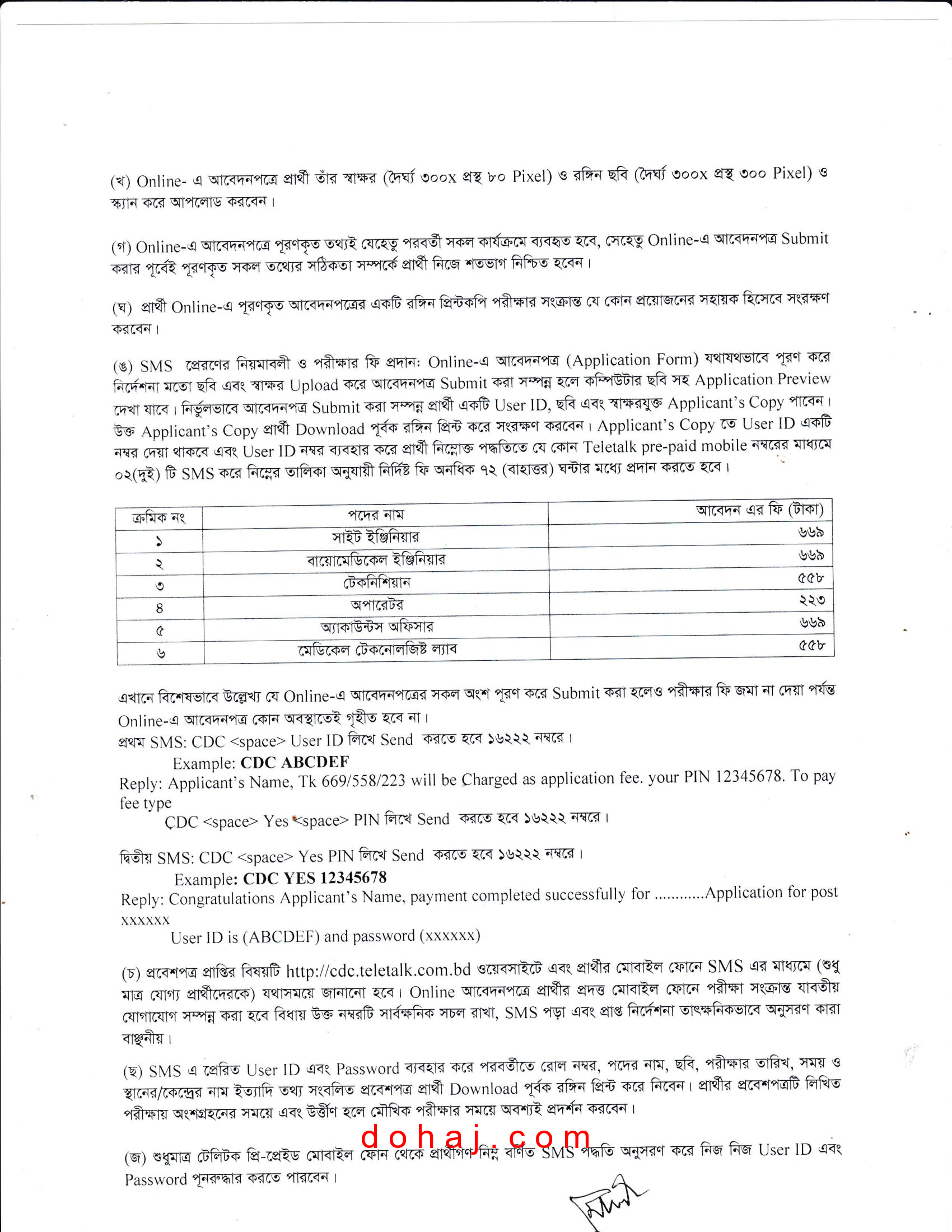 আবেদনের নিয়ম: আগ্রহী প্রার্থীরা অনলাইনে http://cdc.teletalk.com.bd ওয়েবসাইটের মাধ্যমে আবেন করতে পারবেন।