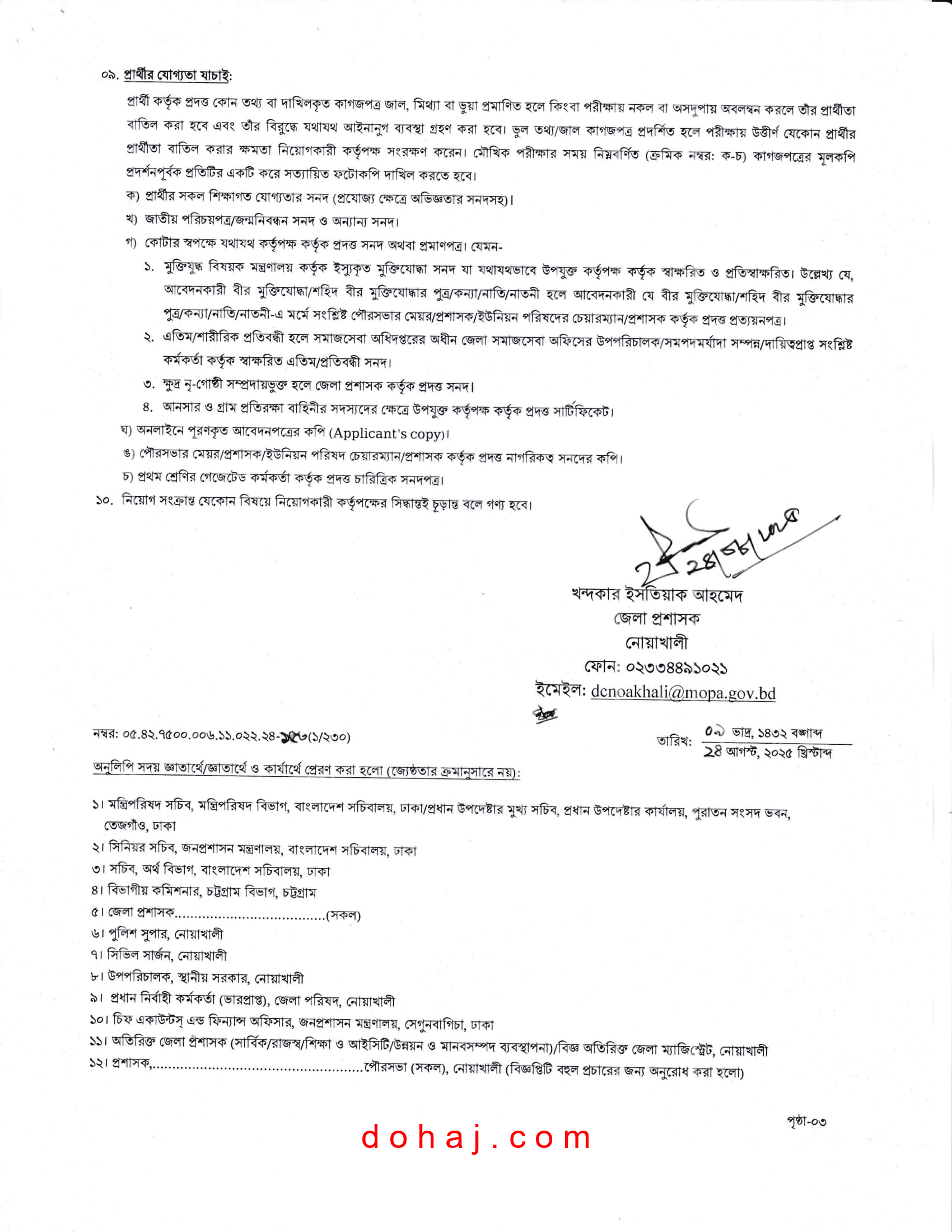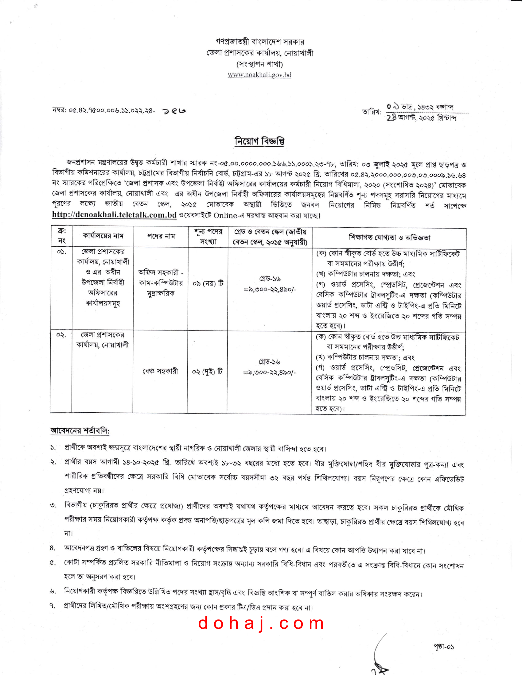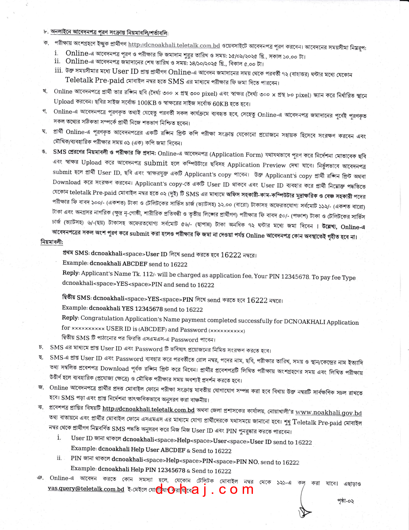 আবেদন প্রক্রিয়া: আবেদন করতে হবে অনলাইনে http://dcnoakhali.teletalk.com.bd/ ওয়েবসাইটের মাধমে অনলাইনে আবেদনপত্র পাঠাতে হবে।
