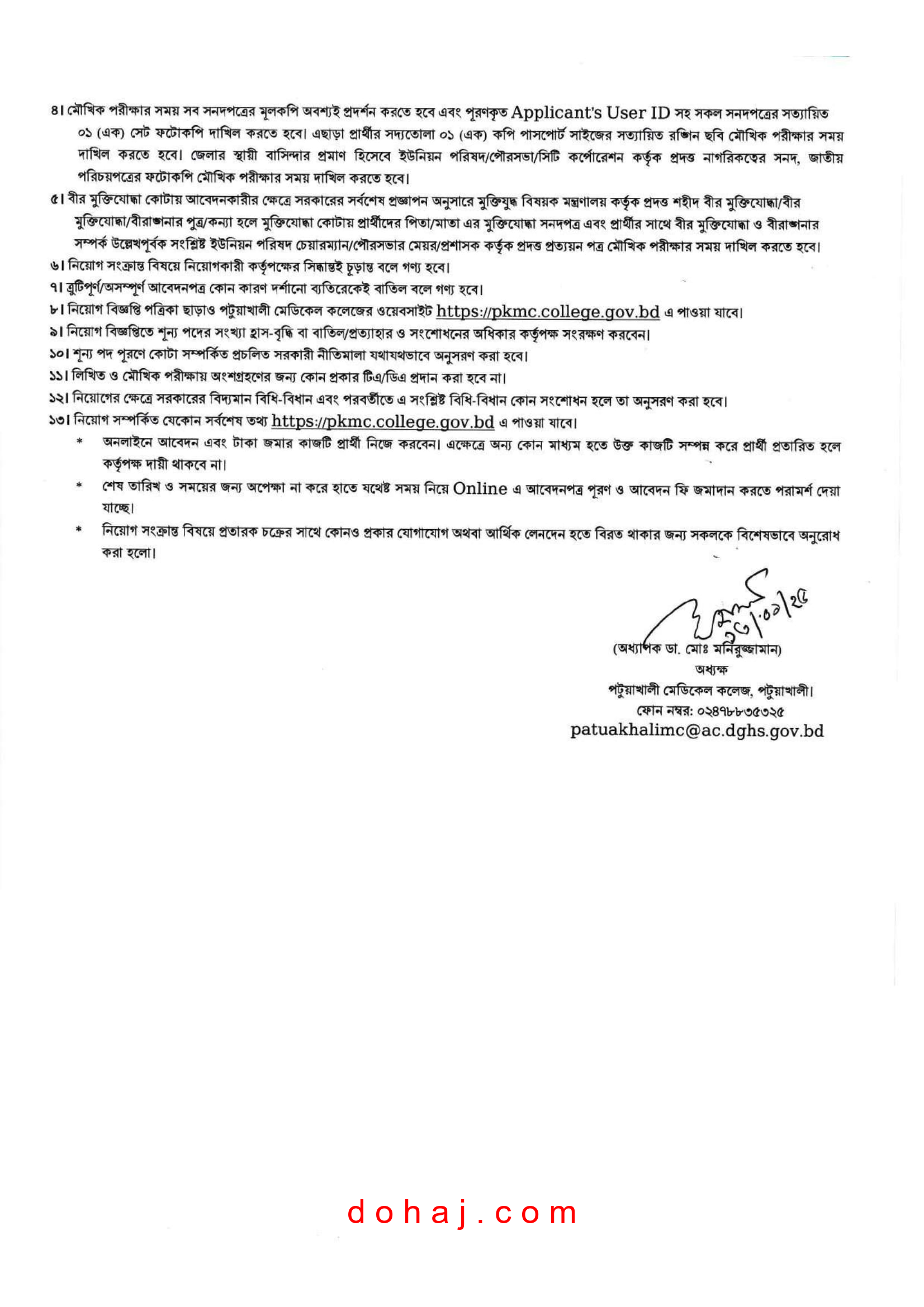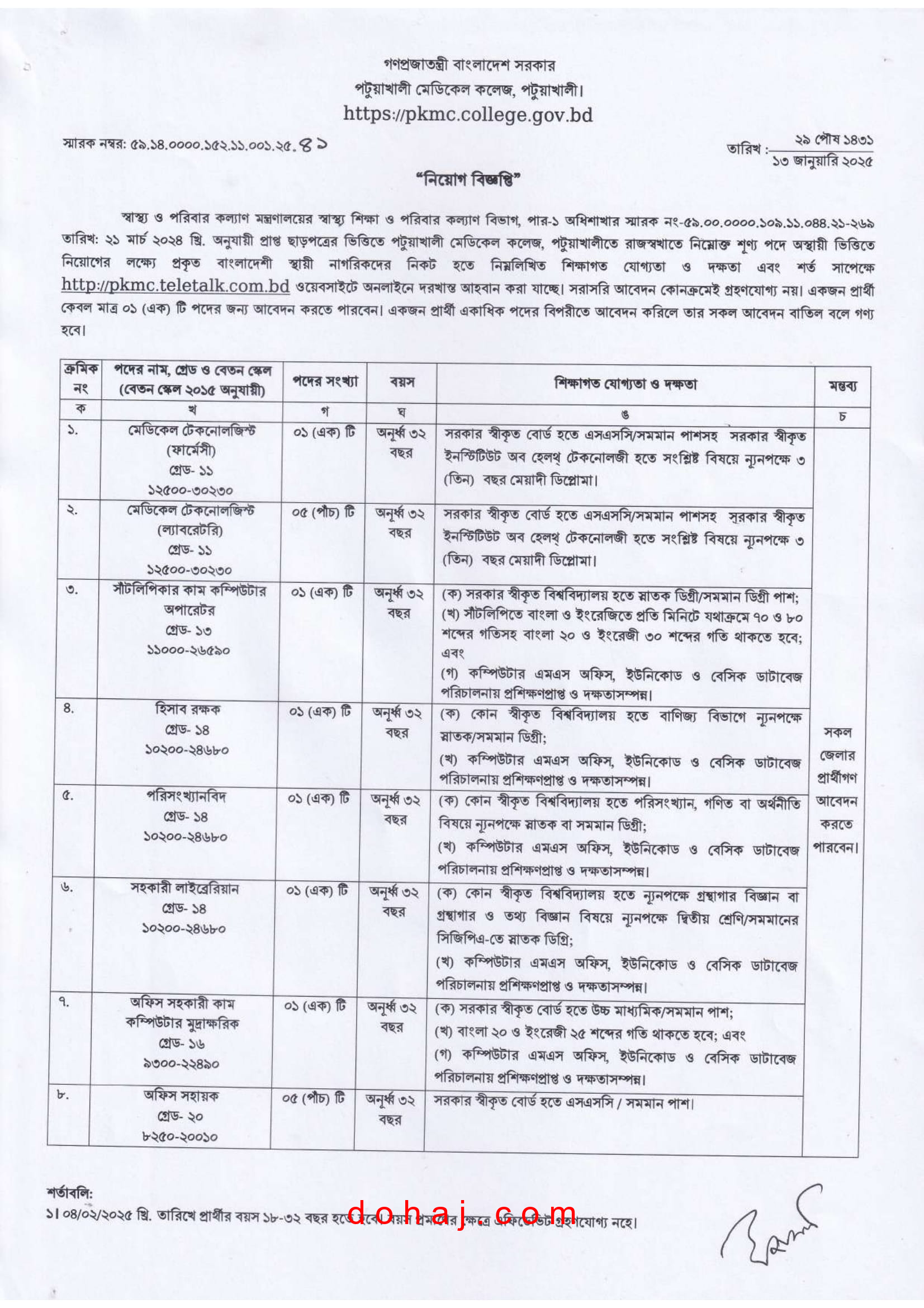 PKMC Job Circular 2025: পটুয়াখালী মেডিকেল কলেজ শূন্য পদে নিয়োগের জন্য বিজ্ঞপ্তি প্রকাশ করেছে। পটুয়াখালী মেডিকেল কলেজ কর ০৮ টি পদে মোট ১৬ জনকে নিয়োগ দেবে। পদসমূহে নারী ও পুরুষ উভয় প্রার্থীরাই আবেদন করতে পারবেন। আগ্রহী প্রার্থীরা অনলাইনে আবেদন করতে পারবেন। আগ্রহ ও যোগ্যতা থাকলে আপনিও আবেদন করতে পারেন। সম্পূর্ণ বিজ্ঞপ্তি বিস্তারিত দেওয়া হল।