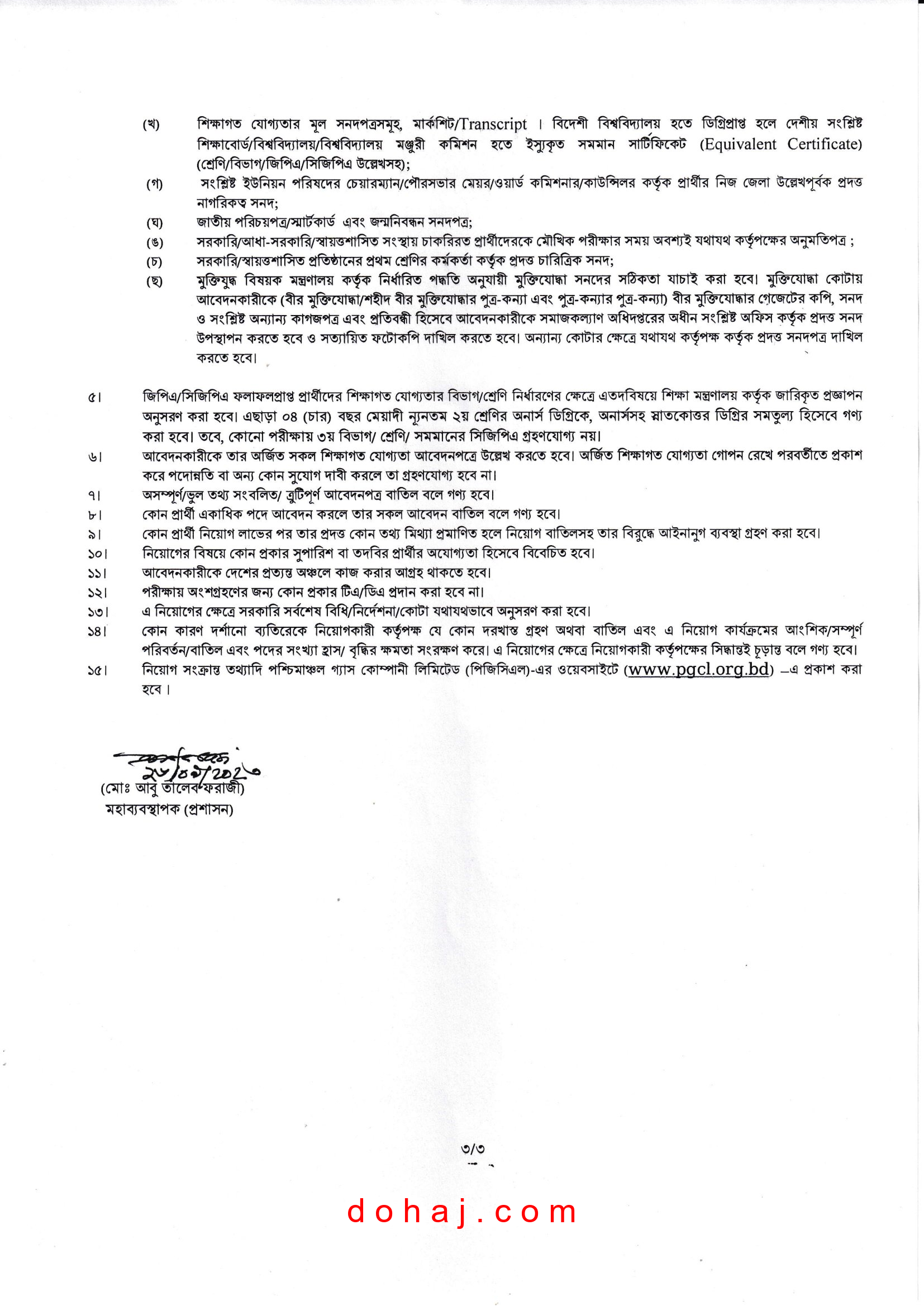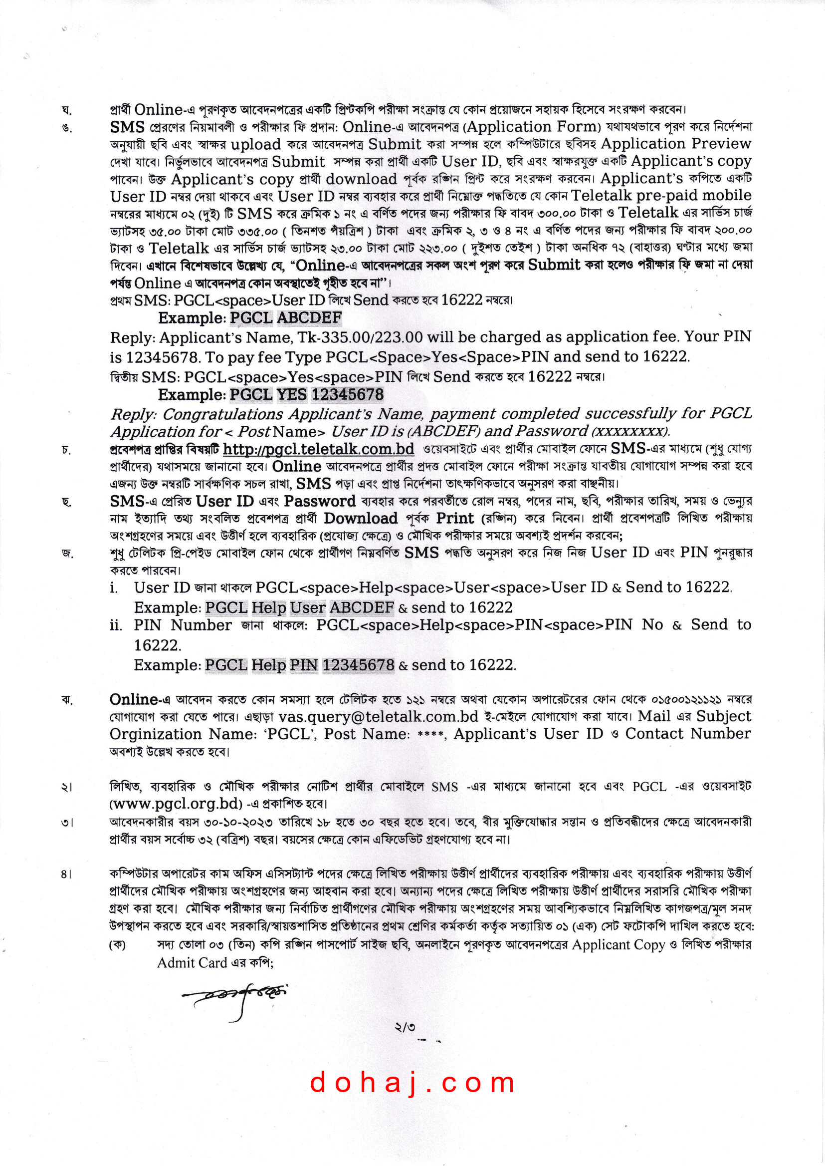 আবেদনের নিয়ম: আগ্রহী প্রার্থীরা অনলাইনে http://pgcl.teletalk.com.bd ওয়েবসাইটের মাধ্যমে আবেন করতে পারবেন।