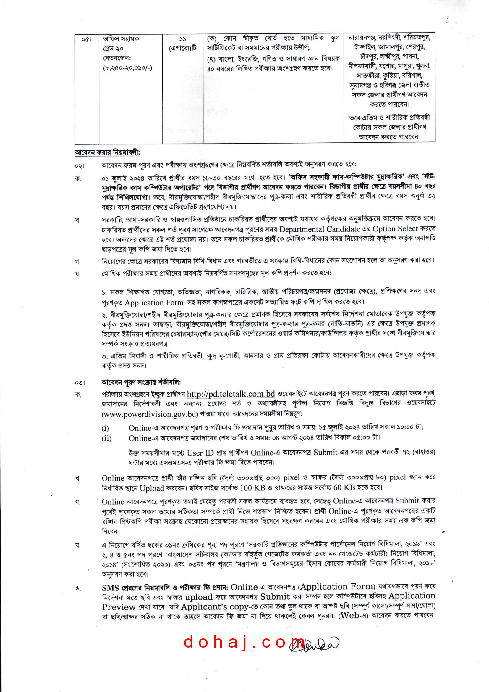 আবেদনের প্রক্রিয়া: সকল প্রার্থীকে অনলাইনে http://pd.teletalk.com.bd ওয়েবসাইটের মাধ্যমে আবেদন করতে হবে ।