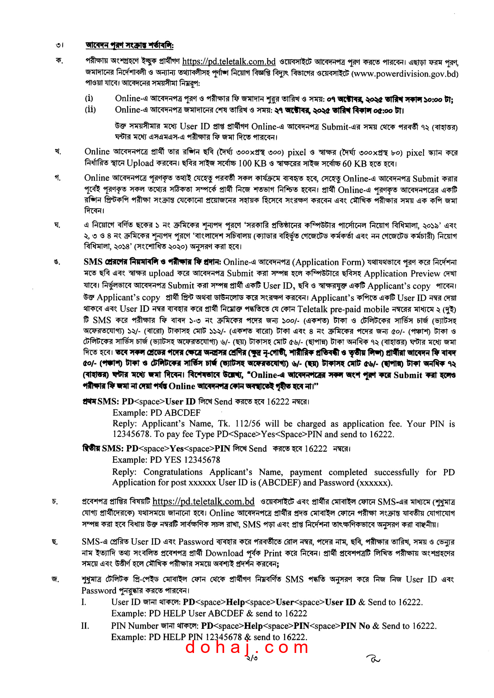 আবেদনের প্রক্রিয়া: সকল প্রার্থীকে অনলাইনে http://pd.teletalk.com.bd ওয়েবসাইটের মাধ্যমে আবেদন করতে হবে ।