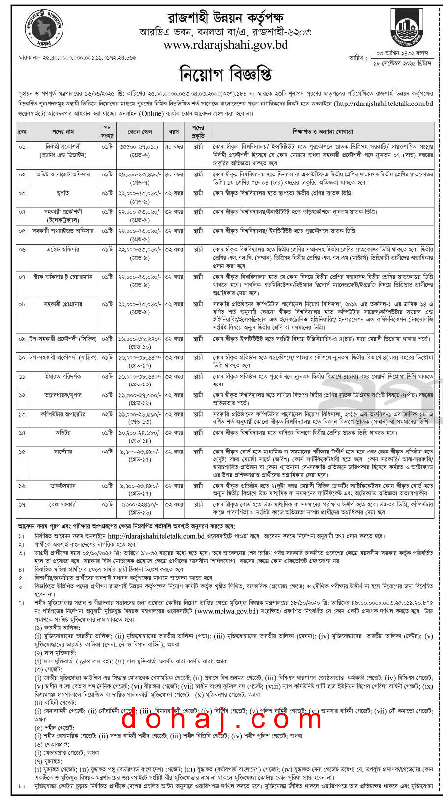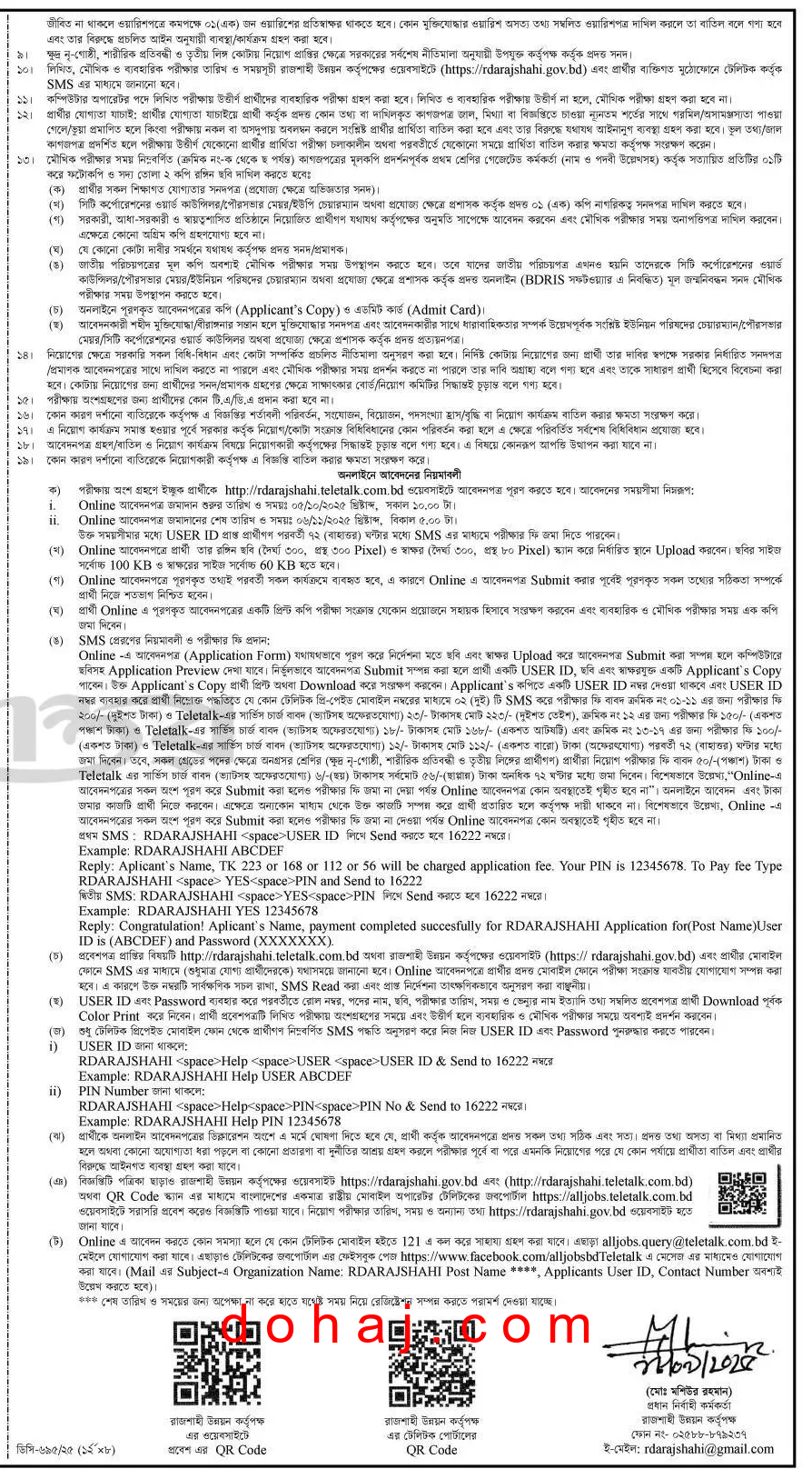 আবেদনের নিয়ম: আগ্রহী প্রার্থীরা অনলাইনে https://rdarajshahi.teletalk.com.bd ওয়েবসাইটের মাধ্যমে আবেন করতে পারবেন।
