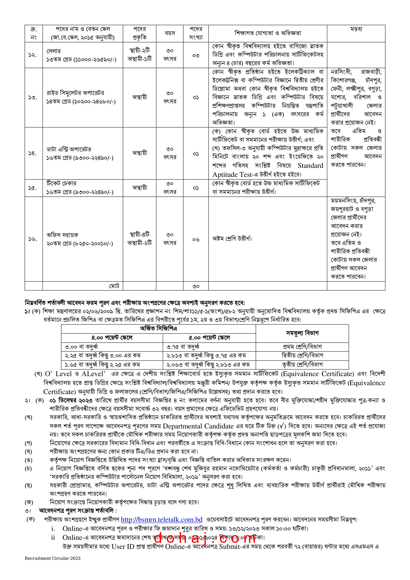 আবেদনের শেষ সময়: ০২ জানুয়ারি ২০২৪ তারিখ বিকাল ০৫:০০ টা পর্যন্ত আবেদন করা যাবে।