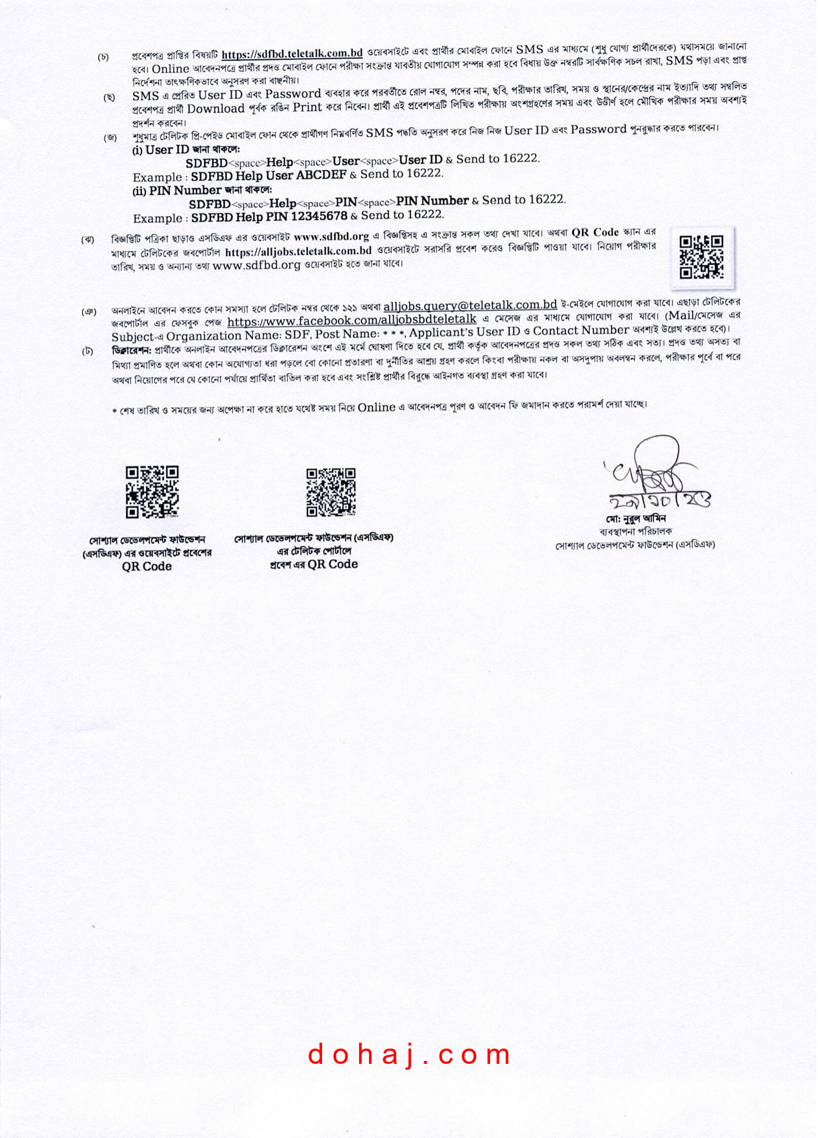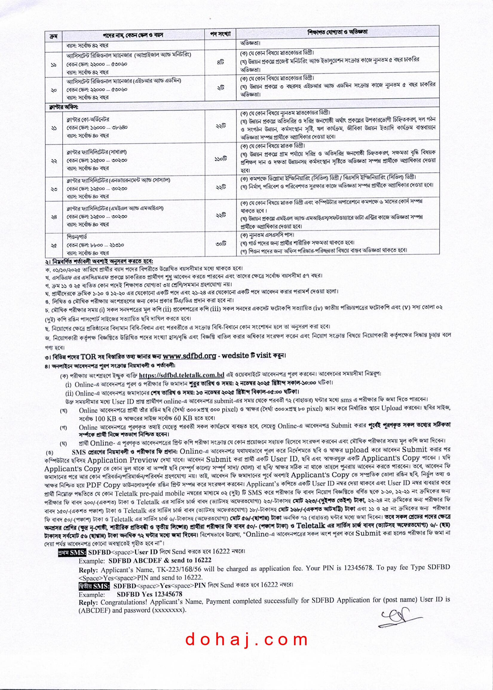 আবেদনের নিয়ম: আগ্রহী প্রার্থীরা অনলাইনে http://sdfbd.teletalk.com.bd ওয়েবসাইটের মাধ্যমে আবেন করতে পারবেন।